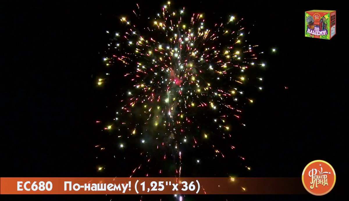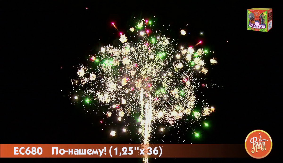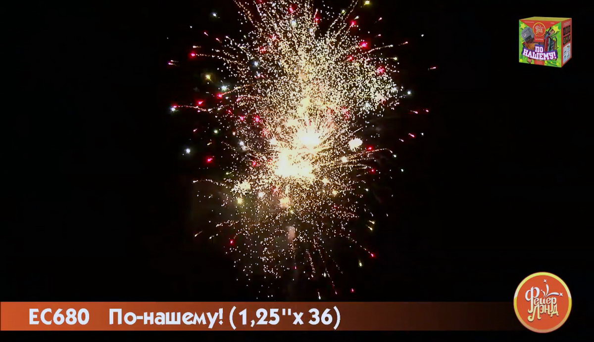 Залпы: 36 Время работы: До 55 сек Высота фейерверка: До 55 м Цвет: Желтый, Белый, Синий, Фиолетовый, Золотой, Зеленый, Красный Праздник: Новый Год, День Рождения Размеры упаковки, мм: 235 х 195 х 220 Вес изделия, кг: 3.890 Фасовка: штука Число эффектов: 6 Эффекты: 1. Множество серебряных ниспадающих нитей (парча) и белое мерцание. 2. Красно-синяя сфера (пион) и облако треска (трещащая хризантема). 3. Множество золотых ниспадающих нитей (золотая парча) и золотое мерцание. 4. Зелено-фиолетовая сфера (пион) и облако треска (трещащая хризантема). 5. Красные звезды с пышными хвостами (кокос) и зеленое мерцание. 6. Красочная концовка: Красно- зеленая сфера (пион) и облако треска (трещащая хризантема). Комментарии к товару