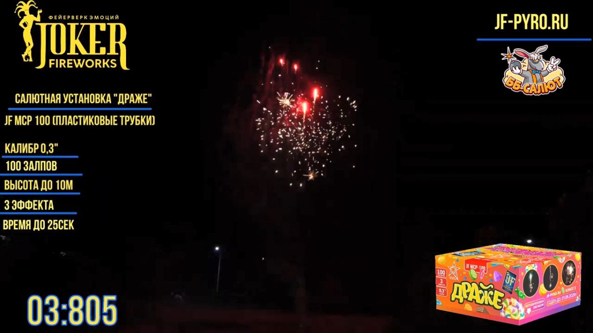Калибр: 0.3 " Залпы: 100 Время работы: До 25 сек Высота фейерверка: До 10 м Батарея комет: Да Особенности фейерверка: Звуковые эффекты Эффекты фейерверка: Звезды, Комета, Мины, Трещащие облака Цвет: Красный, Зеленый, Золотой Праздник: День Рождения, Новый Год Размеры упаковки, мм: 140 х 140 х 70 Вес изделия, кг: 0.350 Фасовка: штука Число эффектов: 3 Описание: Яркий и динамичный салют Драже - маленькое пиротехническое шоу с вкусным названием мелких круглых конфет. И оно очень подходит к этому небольшому фейерверку. Только представьте: тысячи маленьких звездочек-конфеток озарят ночное небо и порадуют зрителей! Вы не поверите: в упаковке аж 100 летающих ракет! Каждая из них с шумом поднимается на высоту 10 метров, разбрасывая на своем пути много-много мелких трещащих звездочек. Еще секунда и они исчезают в темном небе, и тут же летит следующая. Их цвета меняются друг с другом: раскрывается то красная, то зеленая звезда с пышной кометой. Красивый фейерверк Драже поможет украсить праздничный вечер и всем поднимет настроение. Цена фейерверка поразительно невысокая, для такого количества зарядов. Эффекты: 1. Трещащая мина. 2. Красная звезда с пышной кометой. 3. Зелёная звезда с пышной кометой. Комментарии к товару