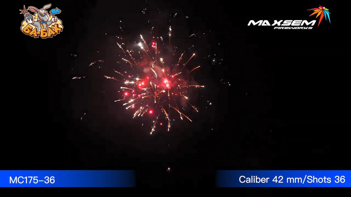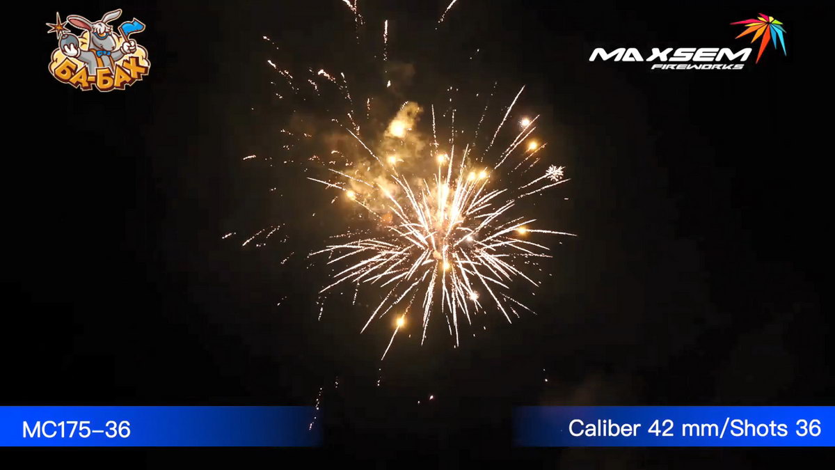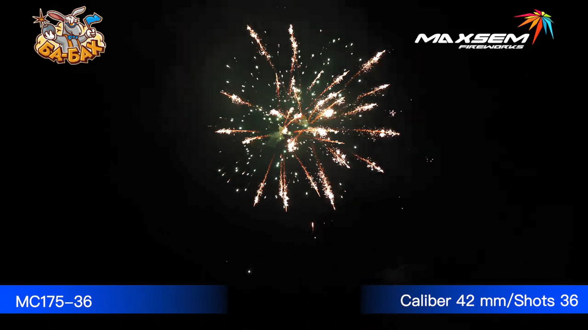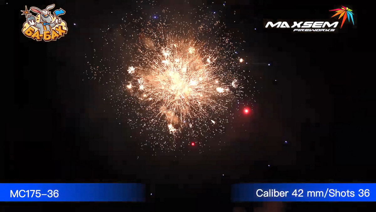 Калибр: 1.75 " (крупнокалиберный) Залпы: 36 Время работы: До 55 сек Высота фейерверка: До 45 м Цвет: Золотой, Белый, Красный, Зеленый, Синий Размеры упаковки, мм: 300 х 300 х 250 Вес изделия, кг: 8.000 Фасовка: штука Число эффектов: 5 Эффекты: 1. Белый пион с золотой пальмой в центре с переходом в 1000 хризантем. 2. Золотые пальмы с шуршащими хвостами и переходом в зеленое, белое мерцание. 3. Золотые пальмы с мерцающими хвостами и красными мерцающими огнями. 4. Красно-синие мерцающие пионы. 5. Финал — 1000 золотых трещащих хризантем. Комментарии к товару