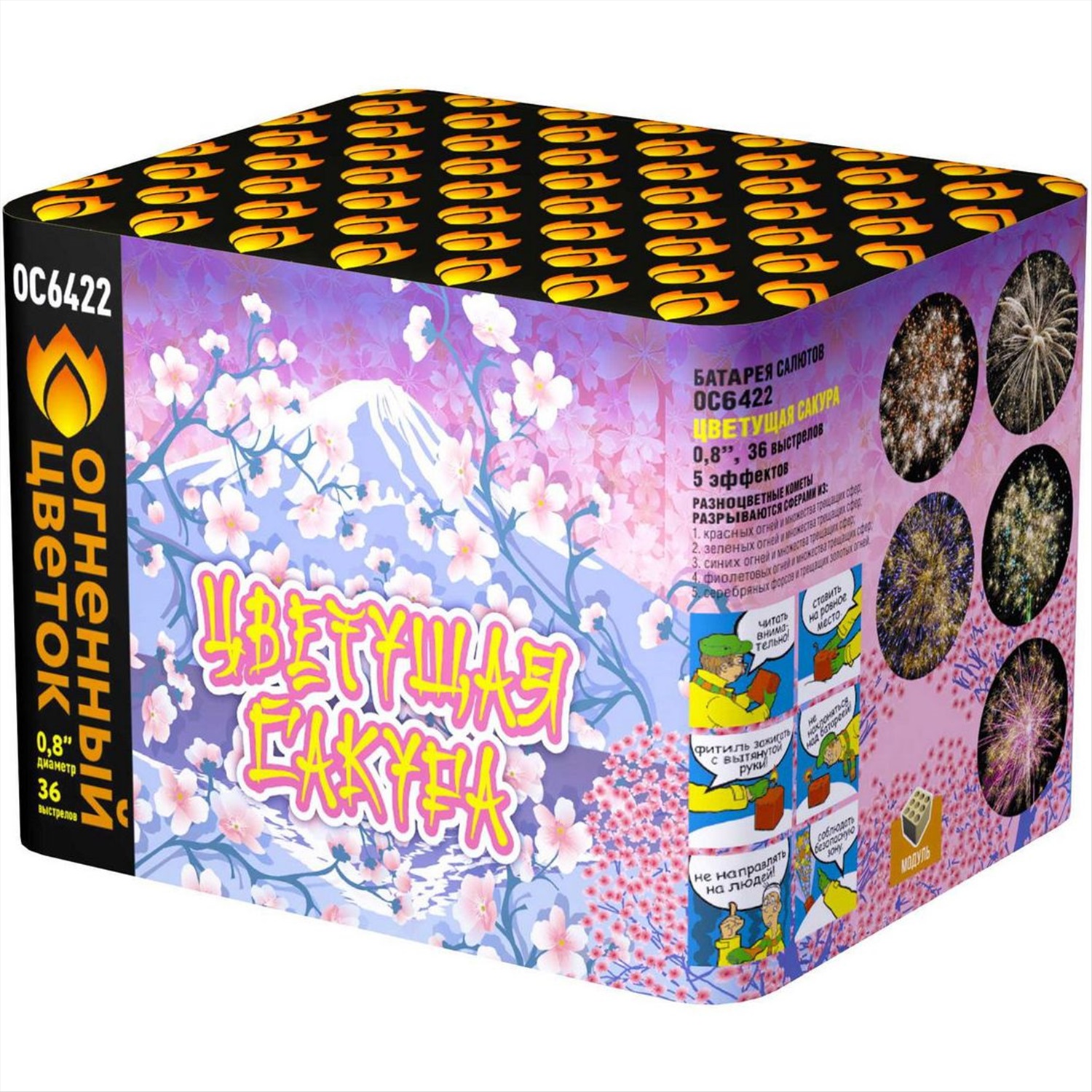 1. Разноцветные кометы разрываются множеством трещащих сфер и сферами из красных огней; 2. Сферами из зеленых огней; 3. Сферами из фиолетовых огней; 4. Сферами из синих огней. 5. Разноцветные кометы разрываются сферами из серебряных форсов и трещащих золотых огней (залп).