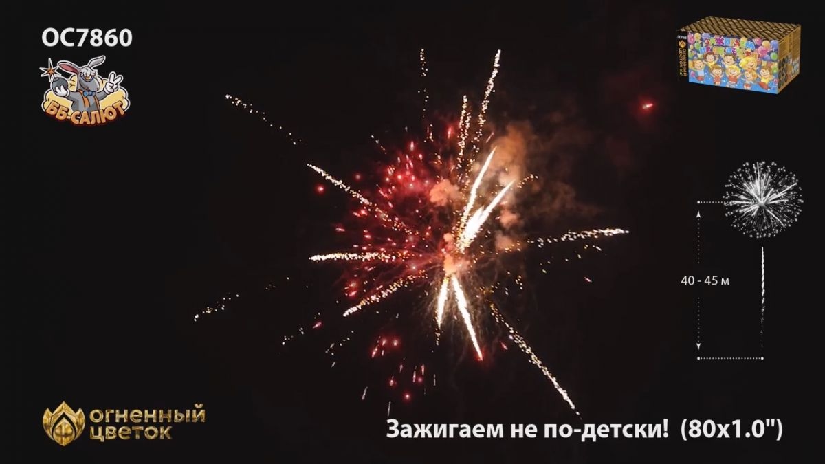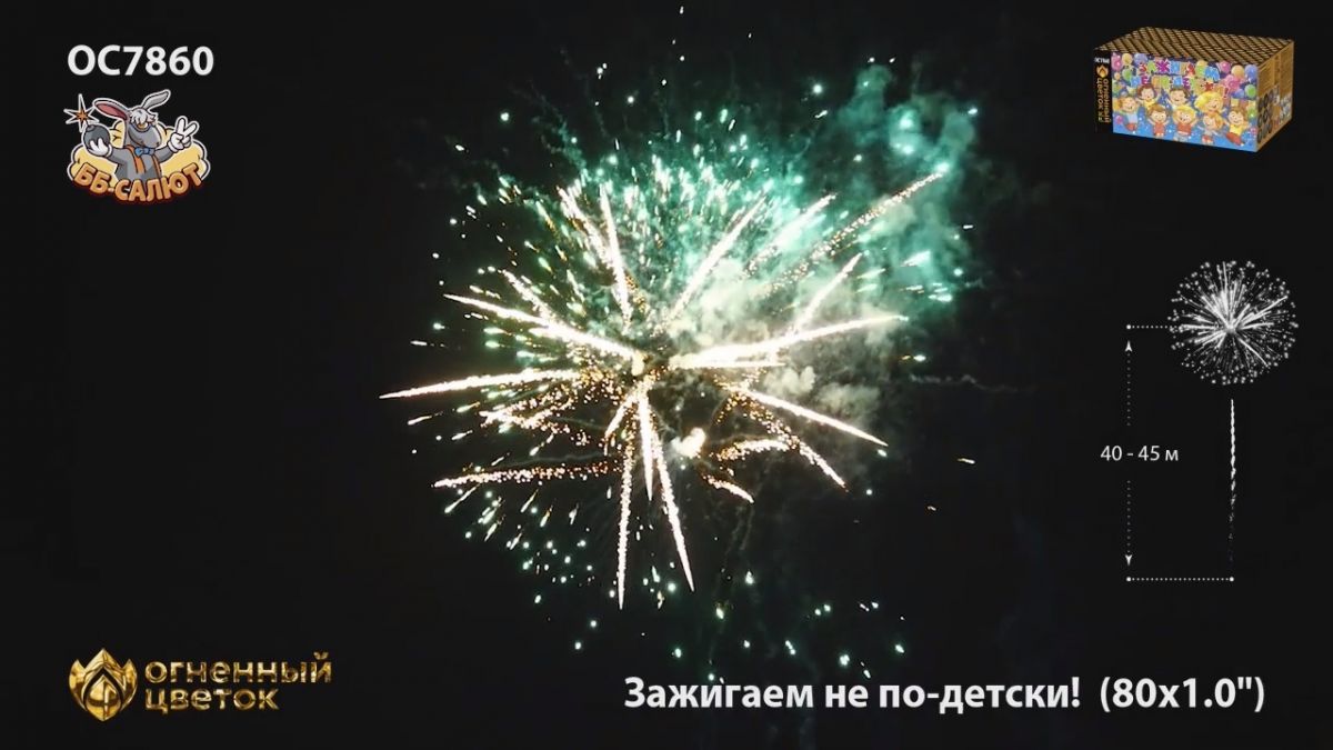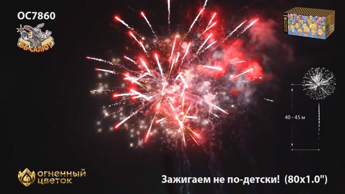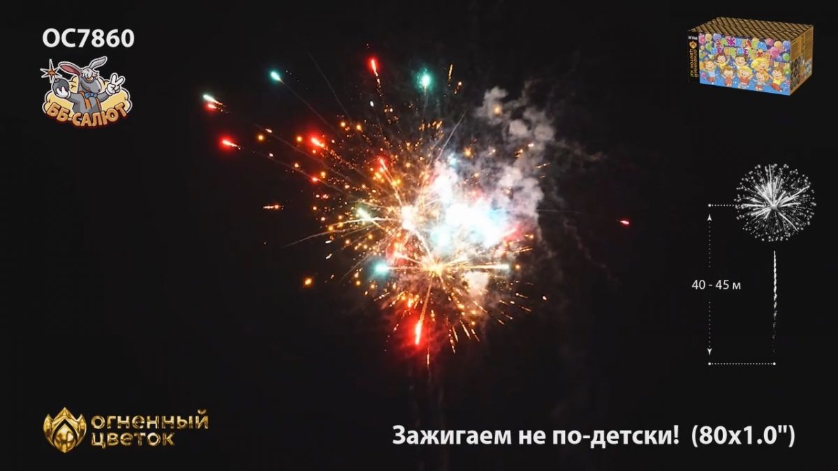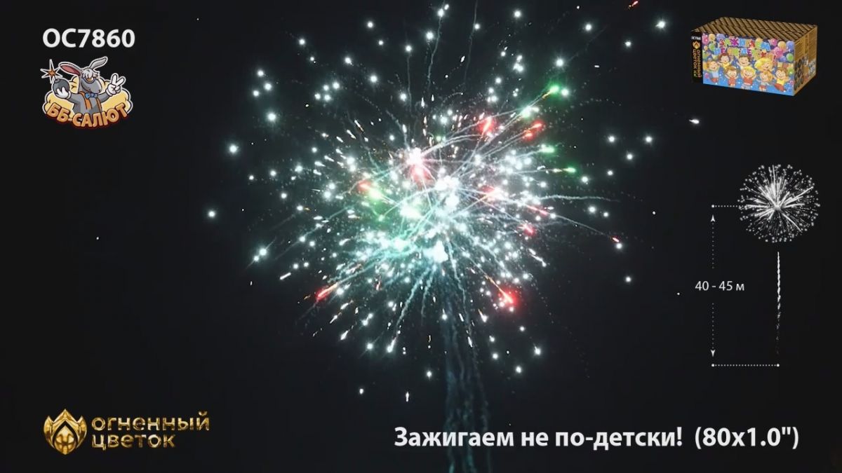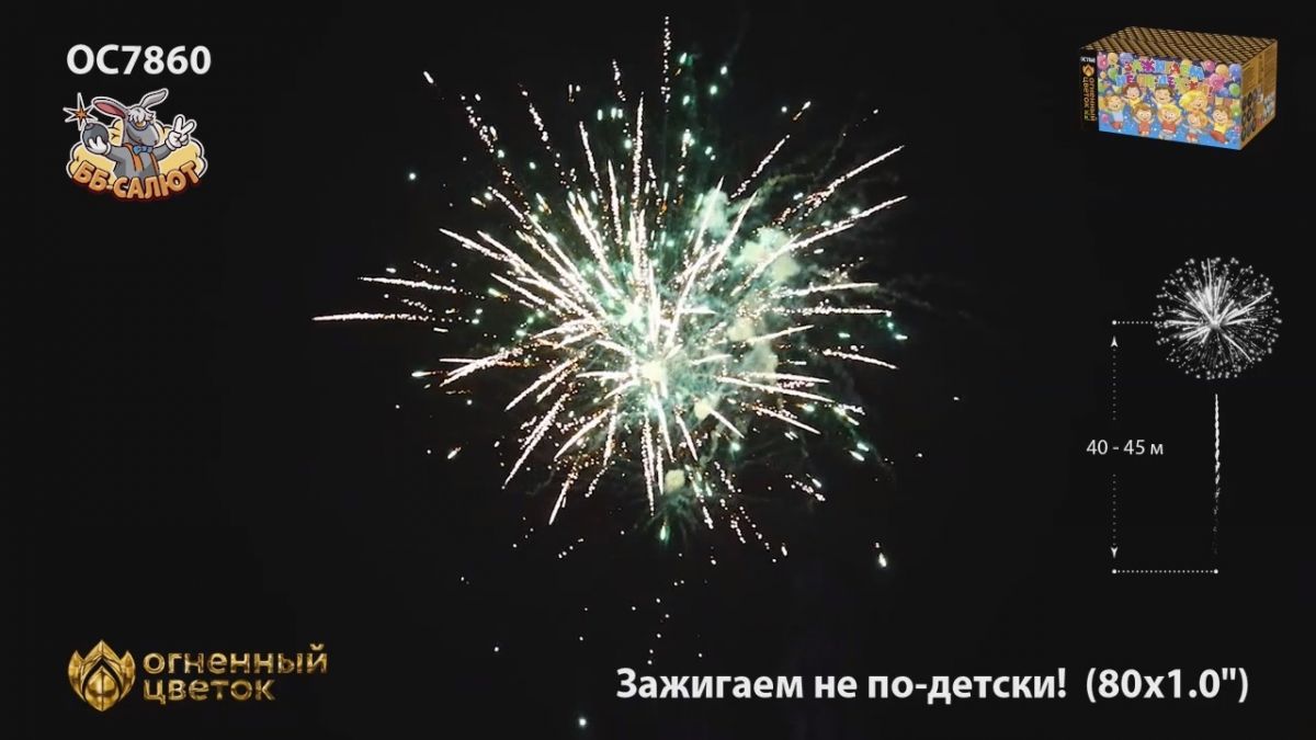 1. Разноцветные кометы разрываются сферами из: красных, зелёных и белых мерцающих огней. 2. Золотые искристые форсы и мерцающие зелёные, красные огни. 3. Красные, голубые и золотые мерцающие огни. 4. Серебряные искристые форсы и зелёные огни. 5. Серебряные форсы с красными, зелёными огнями на концах и золотые трещащие огни. 6. Серебряные форсы, зелёные и красные мерцающие огни. 7. Золотые форсы с белыми мерцающими искрами и красные огни.