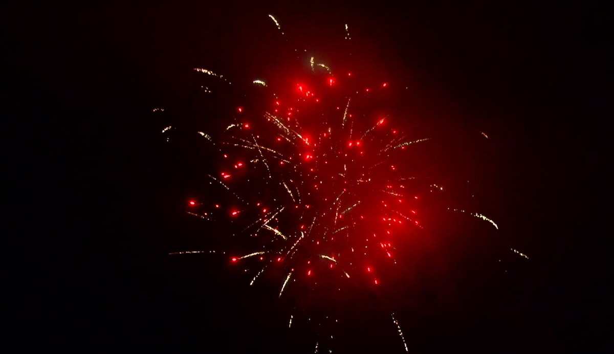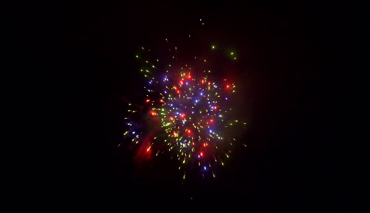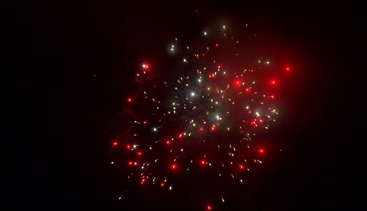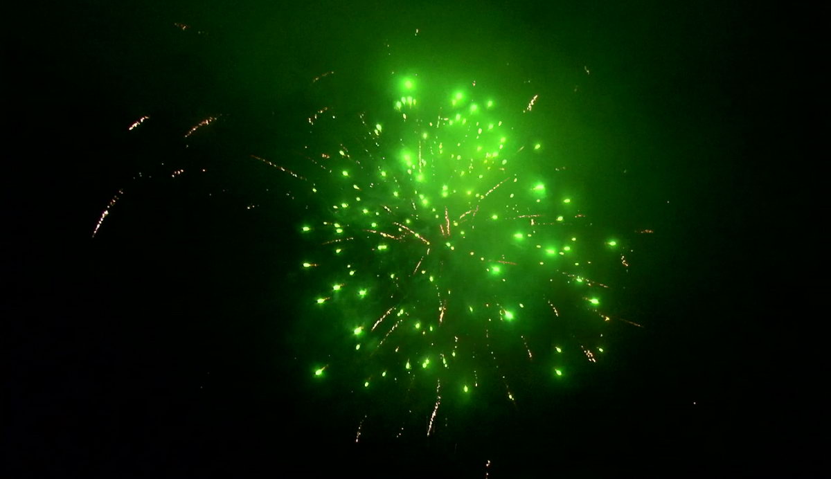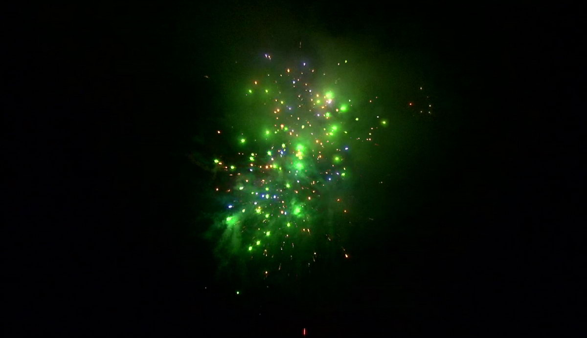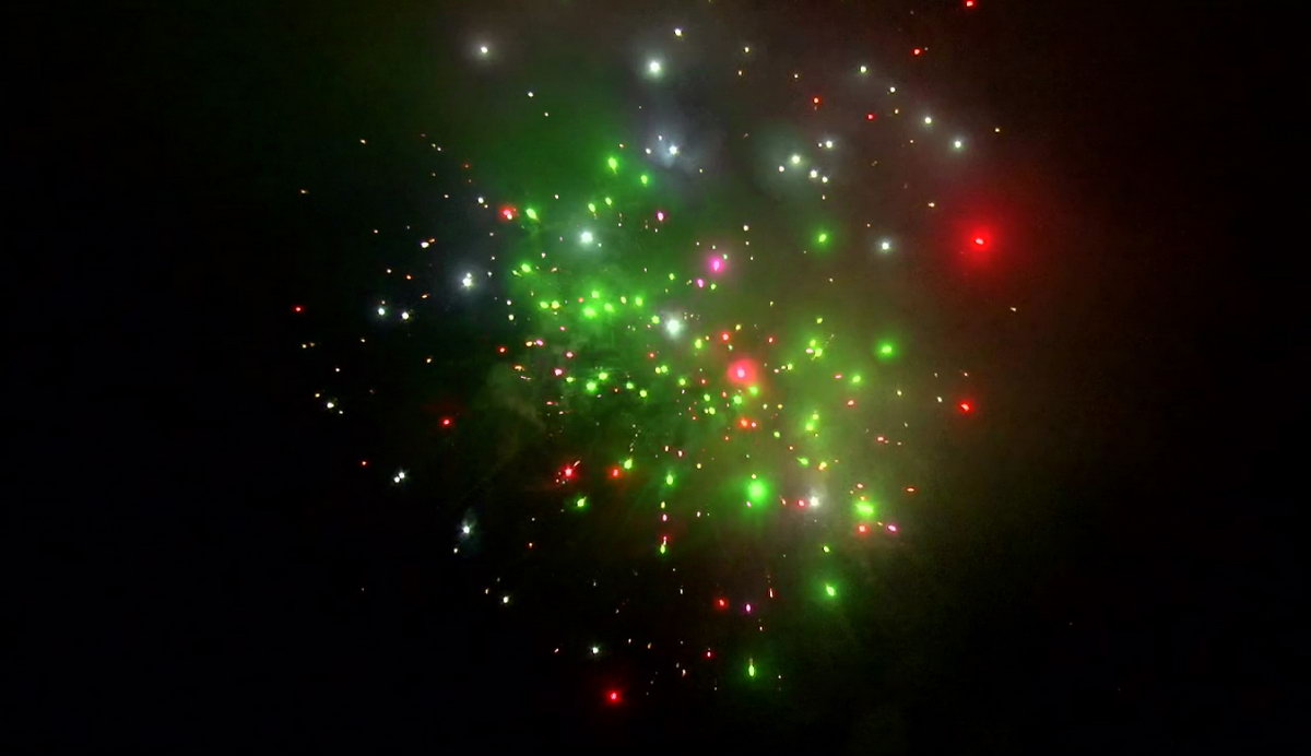 1. Множество серебряных ниспадающих нитей (парча) и красные звезды. 2. Множество серебряных ниспадающих нитей (парча) и зеленые звезды. 3. Множество золотых ниспадающих нитей (парча), красные звезды и треск. 4. Множество золотых ниспадающих нитей (парча), зеленые звезды и треск. 5. Красно-белая мерцающая сфера (пион). 6. Фиолетово-зелено-красная мерцающая сфера (пион). 7. Красно-синяя сфера (пион) и облако треска (трещащий дождь). 8. Зелено-желтая сфера (пион) и облако треска (трещащий дождь). 8. Зелено-сине-золотая мерцающая сфера (пион). 9. Сине-красно-зеленая мерцающая сфера (пион). 10. Свистящие змейки. 11. Красно-сине-желтая сфера (пион) и облако треска (трещащий дождь).