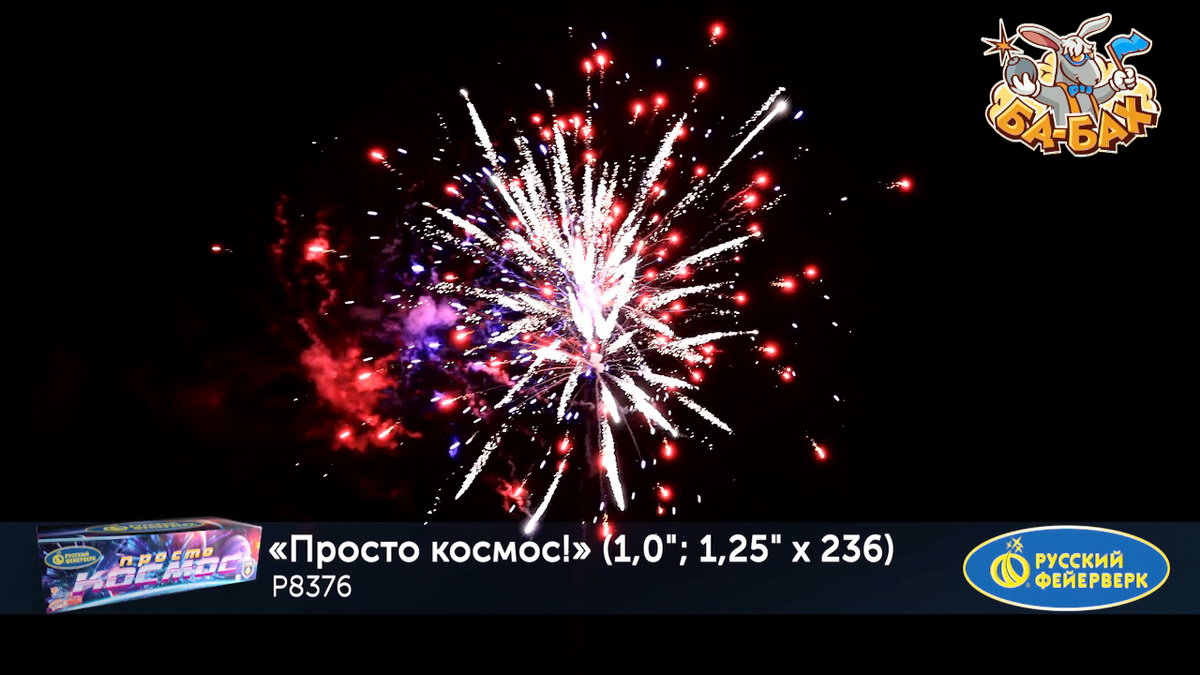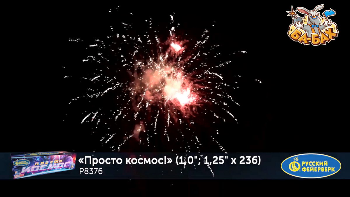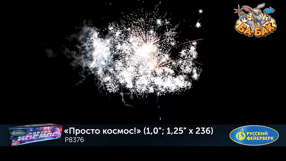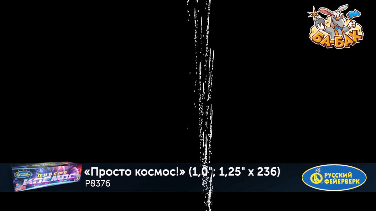 Калибр: 1.25, 1 " (разнокалиберный) Залпы: 236 Время работы: До 205 сек Высота фейерверка: До 55 м Эффекты фейерверка: Веер Цвет: Серебряный, Золотой, Фиолетовый, Синий, Зеленый, Белый, Красный, Желтый Размеры упаковки, мм: 235 х 860 х 370 Вес изделия, кг: 28.000 Фасовка: штука Число эффектов: 21 Эффекты: 1. Свист. 2. Множество серебряных ниспадающих нитей (парча). 3. Красные и зеленые букеты падающих огней (падающие листья). 4. Краснозелено-сине-фиолетовая сфера (пион) и белое мерцание. 5. Серебряные звезды с пышными хвостами (кокос) и красно-синяя сфера (пион). 6. Множество золотых ниспадающих нитей (парча) и облако треска (трещащая хризантема). 7. Веер - Серебряные хвосты, синие звезды и красное мерцание (бурак). 8. Серебряные шуршащие разлетающиеся кометы (паук), красное мерцание и зеленые звезды. 9. Золотые звезды с пышными хвостами (кокос) и синезеленая сфера (пион). 10. Красно-зеленые звезды с пышными хвостами (кокос) и облако треска (трещащий дождь). 11. Веер 2 уровня: вверху - красные кометы с пышными хвостами; внизу - треск. 12. Веер 2 уровня: вверху - зеленые кометы с пышными хвостами и серебряные хаотично разлетающиеся звезды (рыбки); внизу - треск. 13. Веер 2 уровня: вверху - желтые кометы с пышными хвостами и серебряные хаотично разлетающиеся звезды (рыбки); внизу - треск. 14. Сине-красно-зеленая мерцающая сфера (пион). 15. Золотые мерцающие хвосты (мерцающая ива) и фиолетово-зеленая сфера (пион). 16. Зототые трещащие хвосты (трещащая ива), красные звезды и облако треска (трещащая хризантема). 17. Веер W: по сторонам - трещащие кометы с пышными хвостами и красные букеты падающих звезд (падающие листья); посередине - серебряные хаотично разлетающиеся звезды (рыбки) и синие звезды. 18. Вертушка разрывается сине-зелено-золотой мерцающей сферой (пион). 19. Серебряные звезды с пышными хвостами (кокос) и красно-белое мерцание. 20. Свист. 21. Красочная концовка: ЗАЛП - золотые звезды с пышными хвостами (кокос) и облако треска (трещащая хризантема). Комментарии к товару