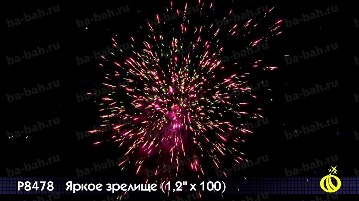 Коробка салюта "Яркое зрелище" украшена сотнями необыкновенных, экзотических цветов. Похожее зрелище ждет любого, кто купит эту коробку и подожжет фитиль. "Яркое зрелище" - удивительно насыщенный и разнообразный салют. Многие фейерверки на сто залпов можно разделить на две одинаковые половинки - набор эффектов повторяется два раза в одной и той же последовательности. Тут же все иначе: каждая "очередь" салютных залпов приносит новый спецэффект - еще красивее, чем предыдущий!