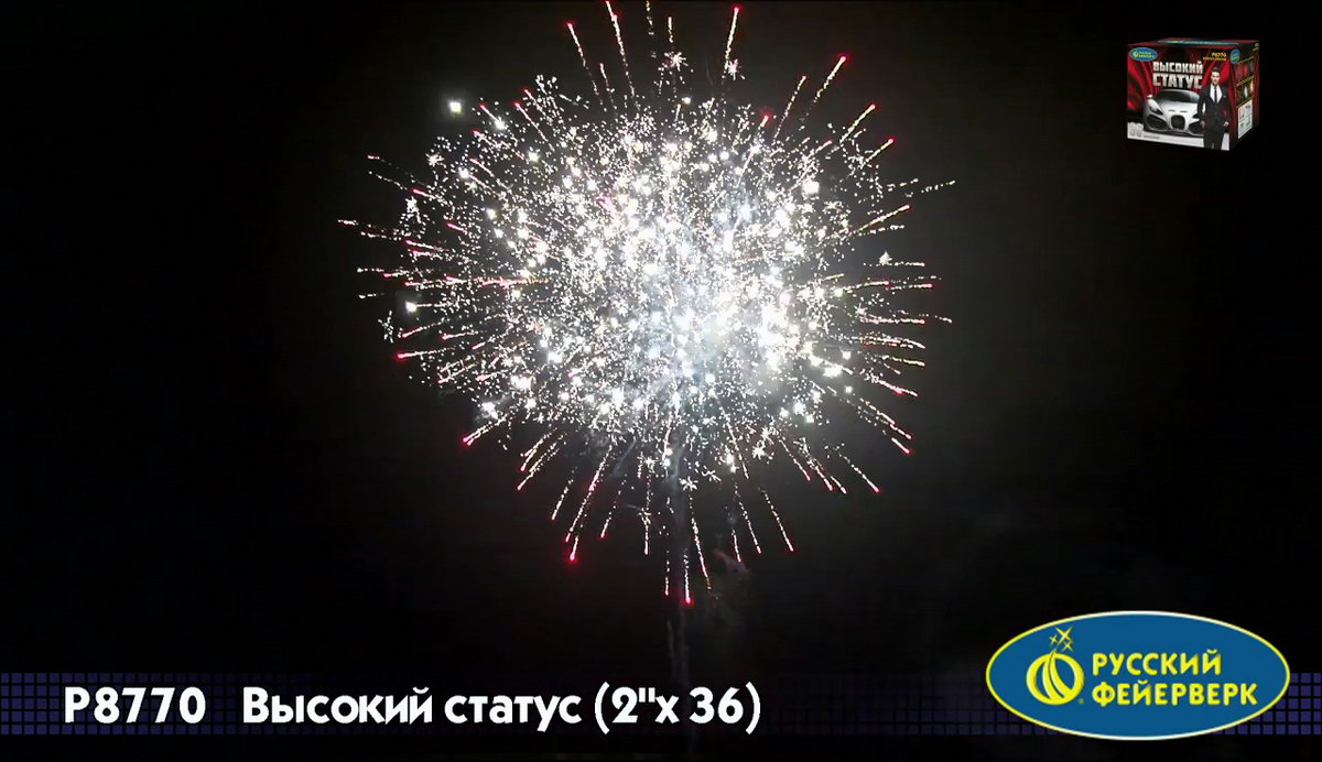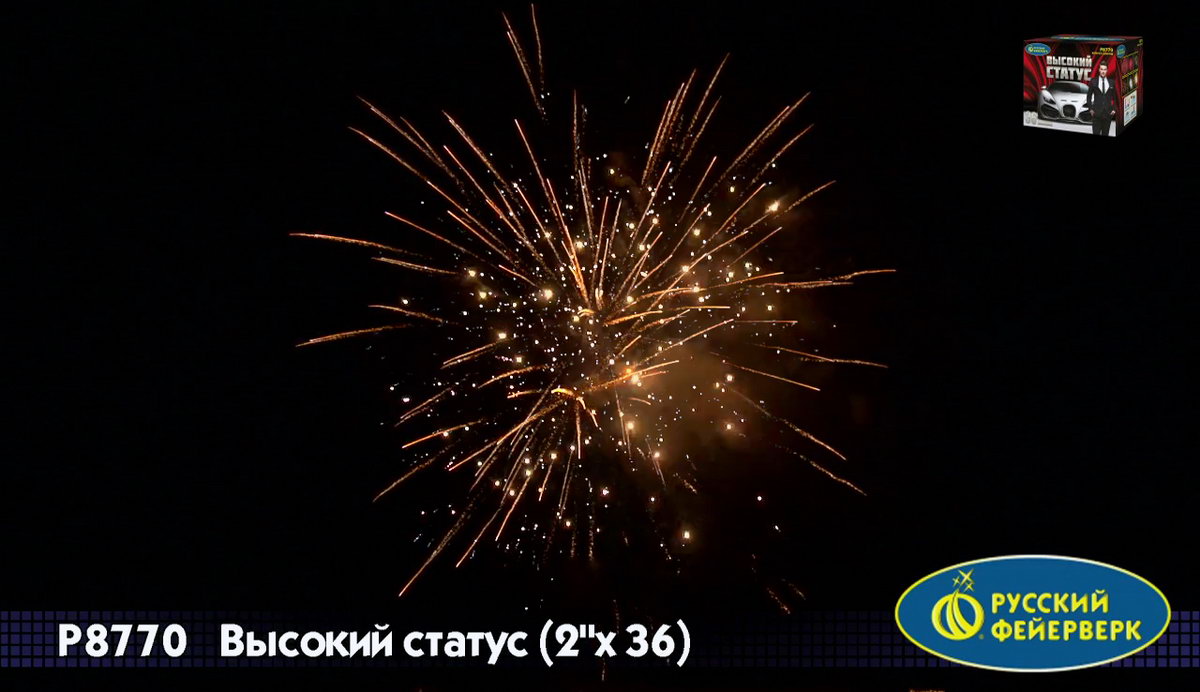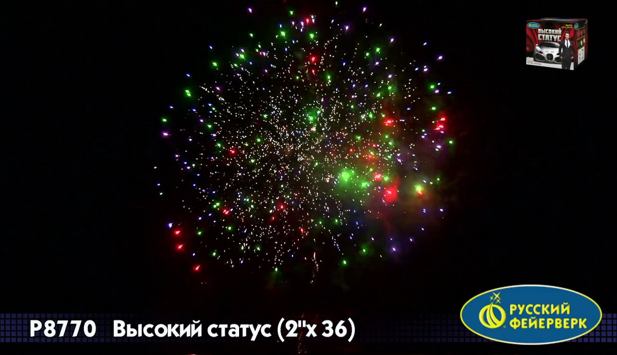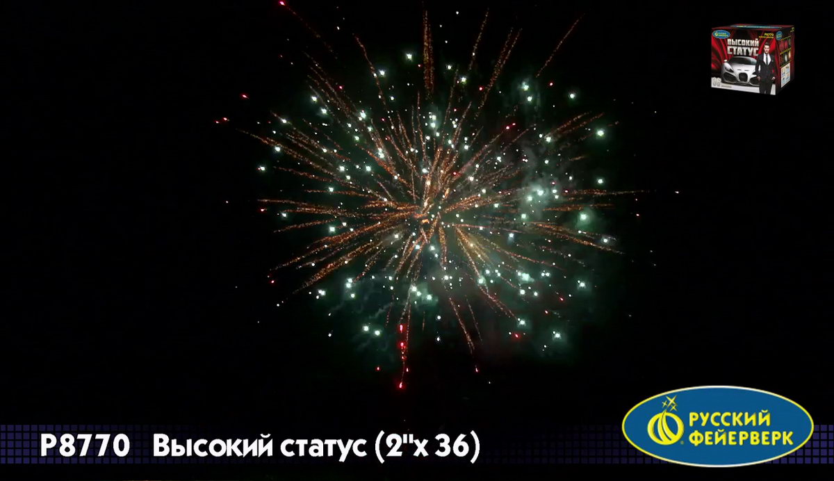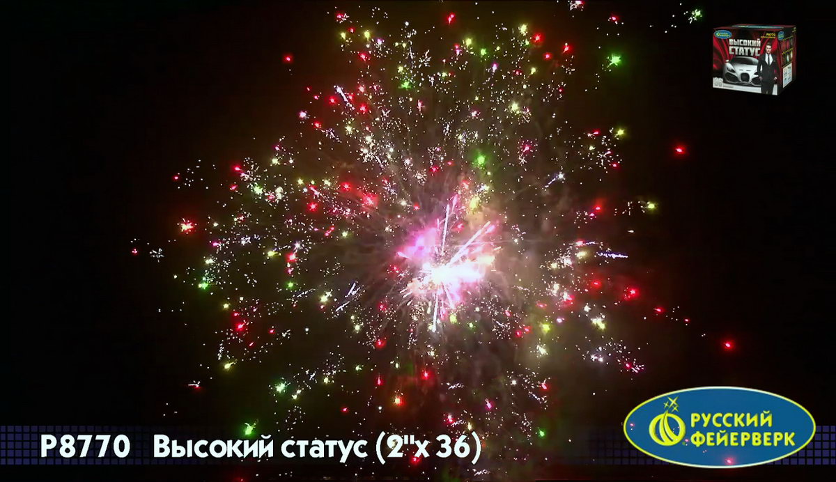 Калибр: 2 " (крупнокалиберный) Залпы: 36 Время работы: До 75 сек Высота фейерверка: До 75 м Цвет: Фиолетовый, Синий, Красный, Желтый, Золотой, Зеленый Праздник: Свадьба, Юбилей, Новый Год, День Рождения Размеры упаковки, мм: 305 х 360 х 355 Вес изделия, кг: 13.500 Фасовка: штука Число эффектов: 6 Описание: Как говорится: "У богатых свои причуды"! Наши пиротехнические мастера постарались угодить искушенным зрителям - любителям крупнокалиберных батарей. Для тех, кто смотрит в первую очередь не на количество выстрелов, а на циферку в графе "калибр" - новый шедевр "Русского фейерверка". Что Вас ждет: пышные розовые кометы с изящными тонкими белоснежными хвостами быстро взрываются в белое трещащее облако, восхитительная огненная астра, на каждом тонком лепестке которой находятся розовые и синие огоньки, прекрасные крупные сферы алых, зеленых, синих и розовых огней, разрывающихся в перламутровое облако треска и шума искр. Сменяет это великолепие нежный цветок тонких языков медного пламени с золотистыми нежными вспышками, которые дополняются розовыми капельками росы и бирюзовым сиянием. А в финальном статусном залпе - целое облако красочных лимонных, розовых, зеленых искр и перламутровых тонких линий комет, которые перевоплощаются в трещащие небольшие облака колючих острых искр. Вот представительный, солидный вариант для тех, кто любит богатые и эффектные представления, потрясающие силой и красотой каждого отдельно взятого залпа. Решились - покупайте! Вы не ошиблись с выбором! Эффекты: 1. Красные звезды с пышными хвостами (кокос) и облако трещащих разрывов (трещащая хризантема). 2. Сфера золотых хвостов с переходом в красно-синие звезды (цветная хризантема). 3. Красно-зелено-синяя сфера (пион) и облако трещащих разрывов (трещащая хризантема). 4. Множество золотых ниспадающих нитей (парча) и золотое мерцание. 5. Множество золотых ниспадающих нитей (парча) с красными звездами на концах и зеленое мерцание. 6. Красочная концовка: Красно-желто-зелено-фиолетовые шуршащие разлетающиеся кометы (паучки). Комментарии к товару