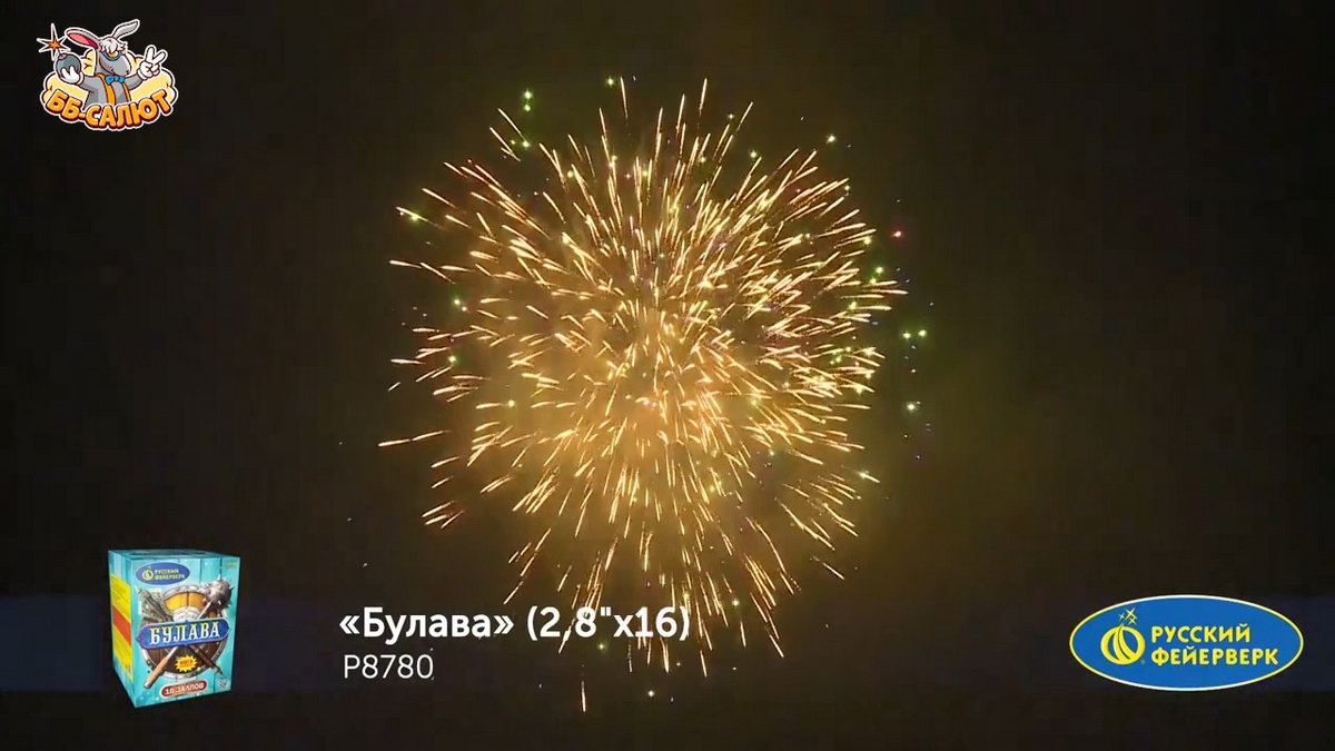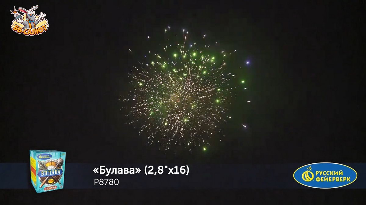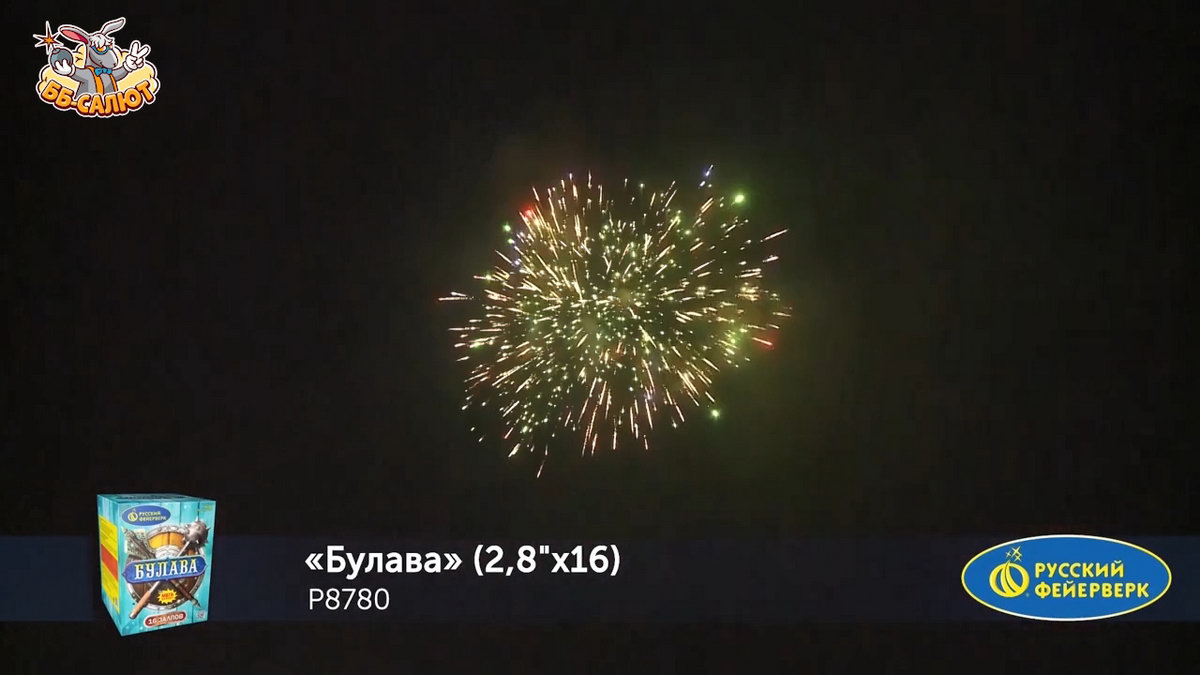 1. Множество серебряных ниспадающих нитей (парча) и красно-сине-зеленое мерцание. 2. Множество золотых ниспадающих нитей (парча) с красным мерцающим центром и треск. 3. Сине-зеленая сфера (пион) и облако треска (трещащая хризантема). 4. Множество мерцающих ниспадающих нитей (парча) и синие звезды. 5. Красочная концовка. ЗАЛП: Множество серебряных ниспадающих нитей (парча) и сине-зеленые звезды.