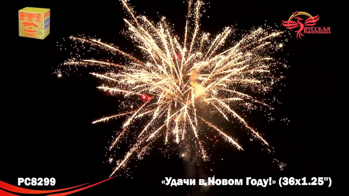 Что пожелать в Новом Году? конечно же, здоровья, конечно же, любви... но, наверное, самое главное пожелание - "Удачи в Новом Году", ведь оно включает в себя все прочие. Удача - это то, чего мало не бывает! И пусть 36 красочных зонтиков фейерверка станут гарантией того, что капризная Госпожа Удача будет к Вам благосклонна!