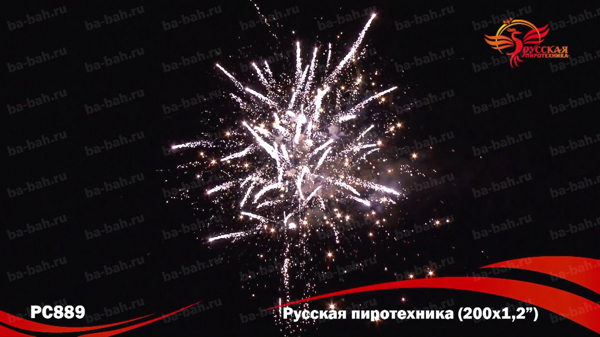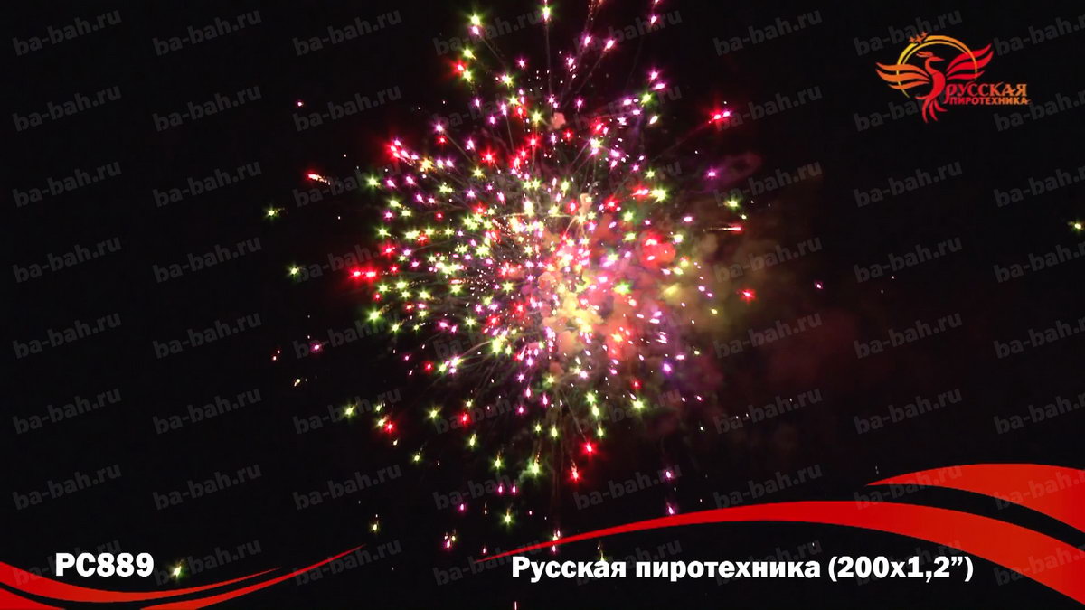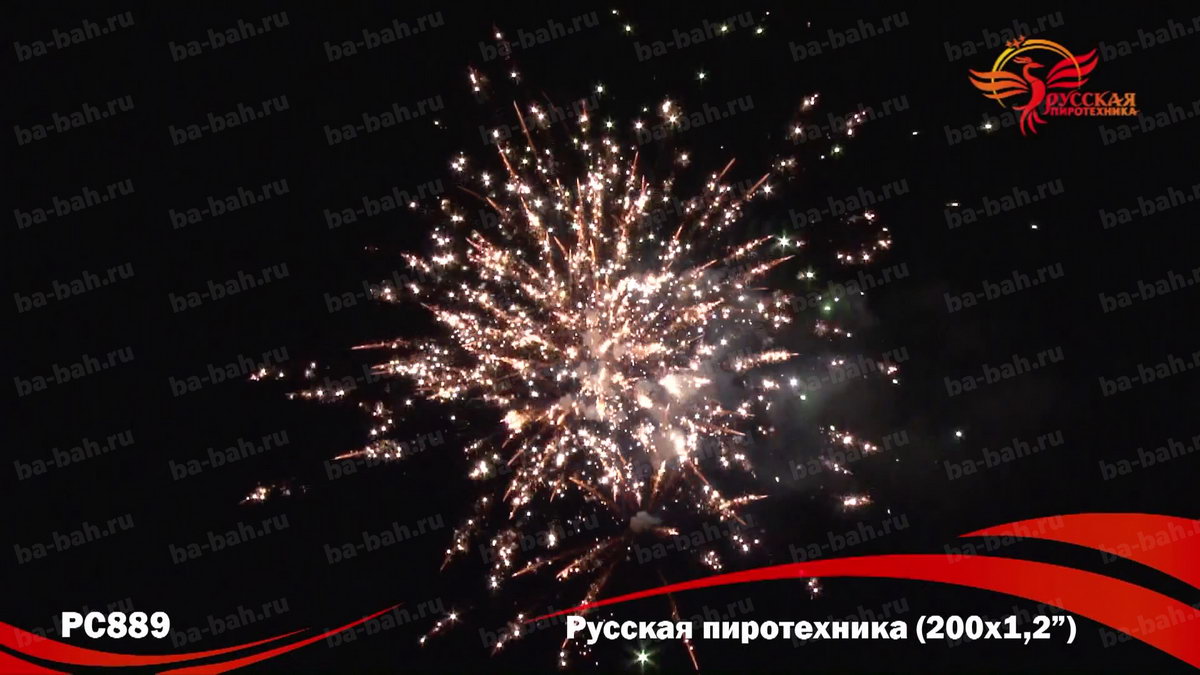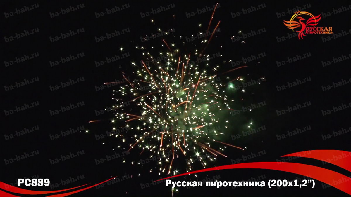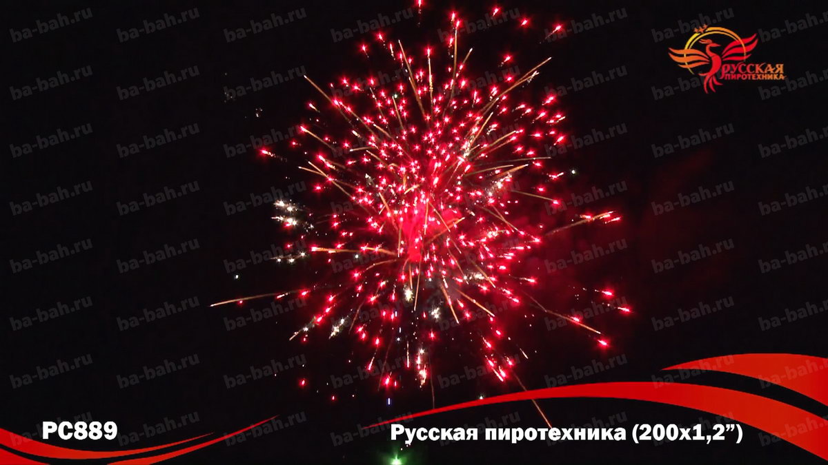 Калибр: 1.25 " Залпы: 200 Время работы: До 105 сек Высота фейерверка: До 40 м Особенности фейерверка: Выраженный финал, Звуковые эффекты Эффекты фейерверка: Шуршащие паучки, Хризантемы, Трещащие облака, Пион, Комета, Кокос, Искристый цветок, Огни, Астра, Искристая ива Цвет: Серебряный, Красный, Синий, Фиолетовый, Золотой, Зеленый Праздник: Новый Год, Юбилей, День Рождения, Свадьба Размеры упаковки, мм: 730 х 375 х 245 Вес изделия, кг: 25.300 Фасовка: штука Число эффектов: 11 Описание: Любая компания - производитель фейерверков - самые лучшие и красочные эффекты бережет для так называемого "титульного" фейерверка. Ведь это - лицо всей компании. Поэтому естественно ожидать, что салют "Русская пиротехника" от одноименного производителя, является фейерверком выдающейся красоты. Так и есть - эта батарея на 200 залпов не обманет ваших ожиданий! 11 красивейших эффектов упакованы в огромную коробку с крупным логотипом "Русской пиротехники". Фиолетовые, голубые, зеленые, красные, золотые, белые огни - крупные и яркие - формируют огромные сферы, пионы и хризантемы с золотыми "лепестками". Их сопровождают трещащие искристые форсы, облака легких мерцающих и тающих искр, золотые кометы с серебристыми шлейфами. Финальный залп - эффектная вспышка множества золотых комет с искристыми хвостами, которые похожи на исполинские бенгальские огни. Эффекты: 1. Зеленые огни и золотые форсы. 2. Крупные красные огни и искристые форсы. 3. Золотые мерцающие огни и серебряные форсы. 4. Красные, зеленые, фиолетовые огни. 5. Золотые мерцающие и трещащие огни. 6. Красные огни и золотые форсы с синими огнями на концах. 7. Фиолетовые огни и искристые форсы. 8. Голубые огни и искристые трещащие форсы. 9. Зеленые мерцающие огни и золотые форсы. 10. Трещащие огни. 11. Искристые трещащие форсы (залп). Комментарии к товару