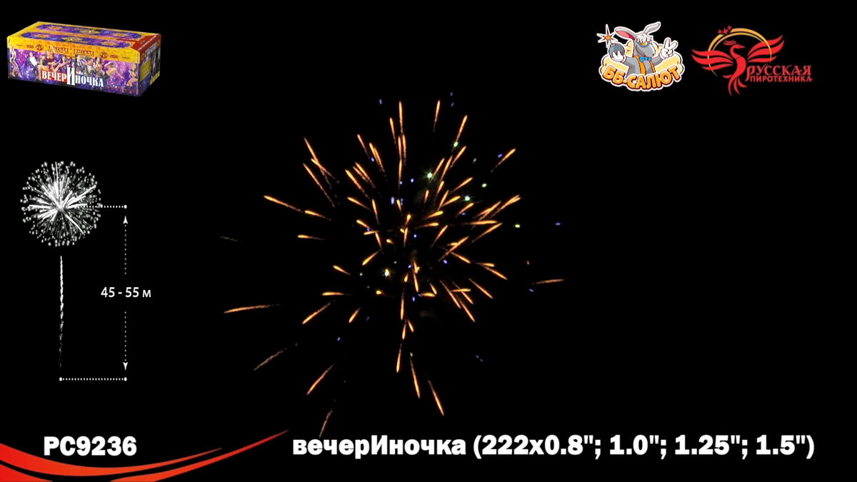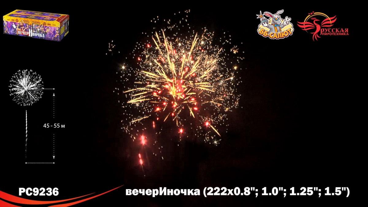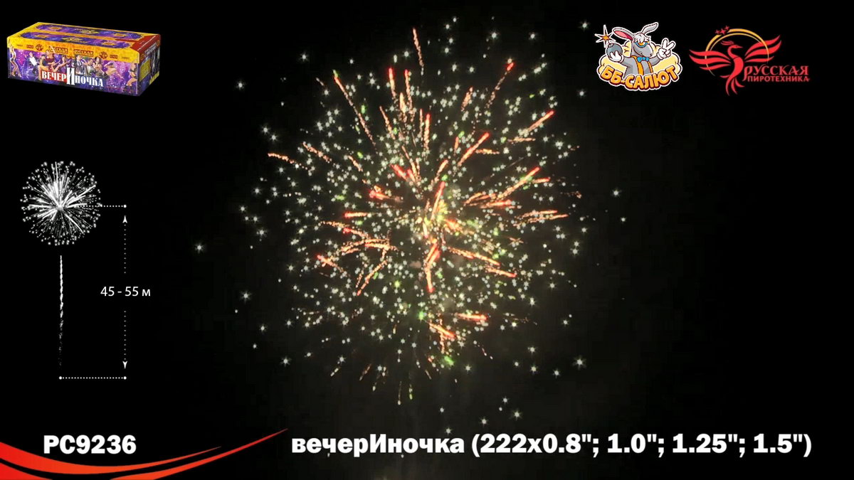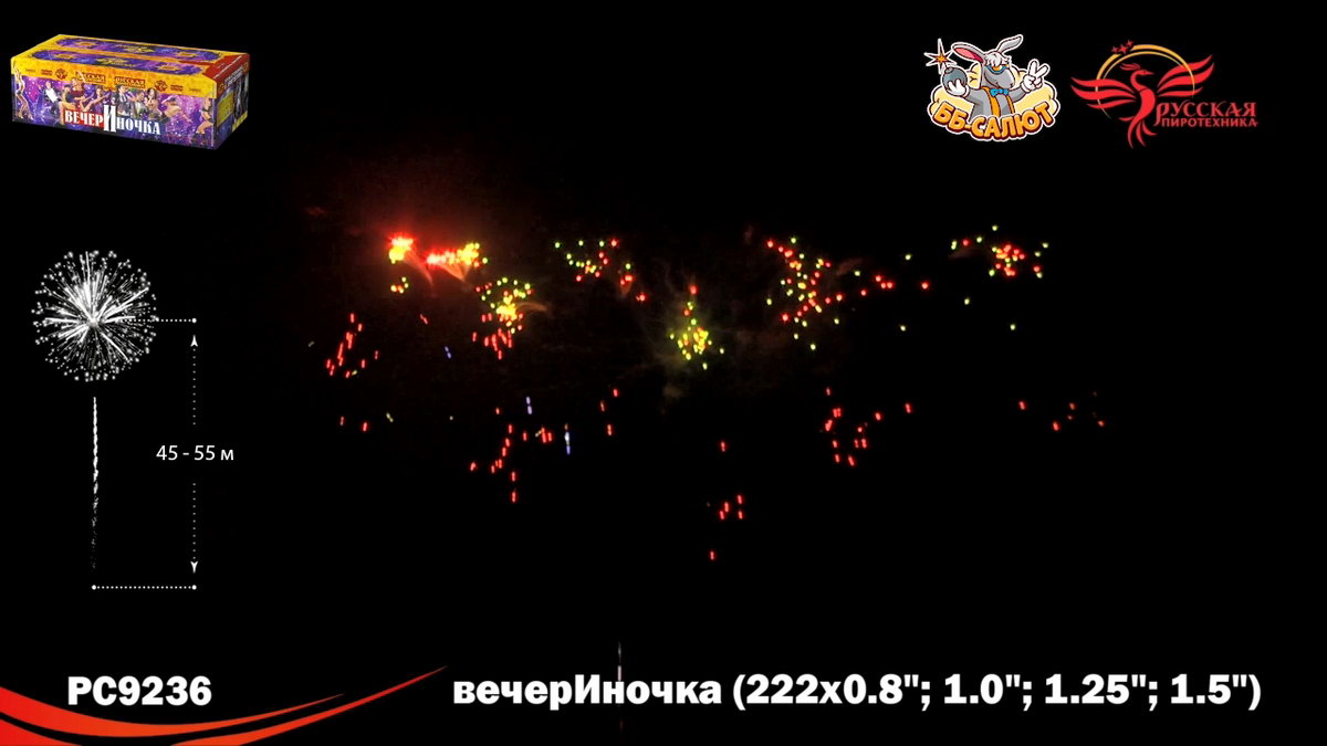 1. Букеты из серебряных мерцающих, синих огней. 2. Разноцветные кометы, свистящие элементы, золотые с мерцающими красными, зелёными, золотыми, серебряными искрами, с серебряными трещащими мерцающими искрами. 3. Зигзагообразные искристые трассы разрываются сферами из: Синих и красных огней с переходом в красные огни. 4. Крупных красных и зелёных, золотых мерцающих огней, множеством золотых трещащих сфер. 5. Коротких золотых форсов, синих и бирюзовых огней. 6. Серебряных форсов с красными огнями на концах, зелёных и белых мерцающих огней. 7. Золотых форсов с серебряными искрами, зелёных, синих, красных и трещащих огней. 8. Золотых искристых форсов и синих огней. 9. Серебряных форсов с фиолетовыми и зелёными огнями на концах, синих и белых мерцающих огней. 10. Серебряных форсов, красных и зелёных мерцающих огней. 11. Красных, зелёных и синих огней, множества трещащих разлетающихся золотых искр, трещащих сфер. 12. Золотых с красными мерцающими, зелёными, золотыми мерцающими искрами форсов и зелёных, красных, синих огней. 13. Золотых с серебряными мерцающими, трещащими искрами форсов, красных, зелёных и мерцающих красных, белых, золотых огней. 14. Золотых форсов и серебряных мерцающих огней. 15. Золотые с серебряными трещащими мерцающими искрами трассы, сферы из золотых форсов и золотых мерцающих огней (веер). 16. Букетики из красных огоньков; золотых форсов (веер). 17. Сферы из серебряных форсов и красных, зелёных огней (веер).