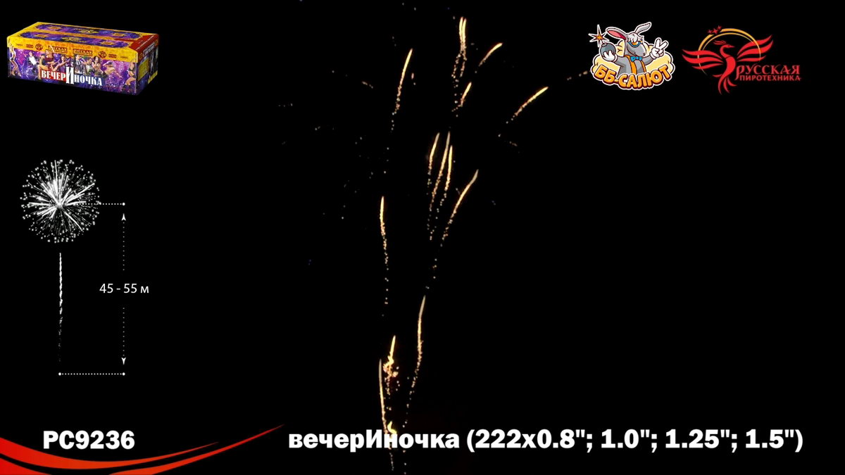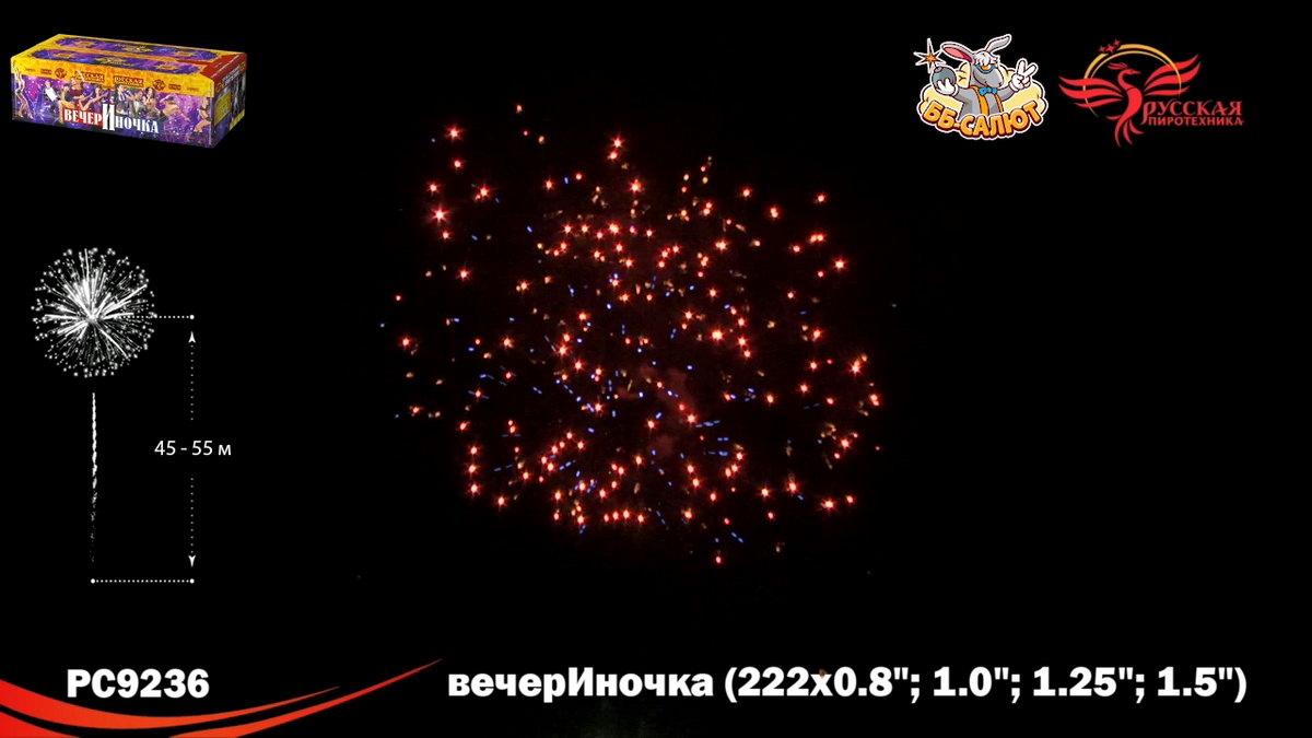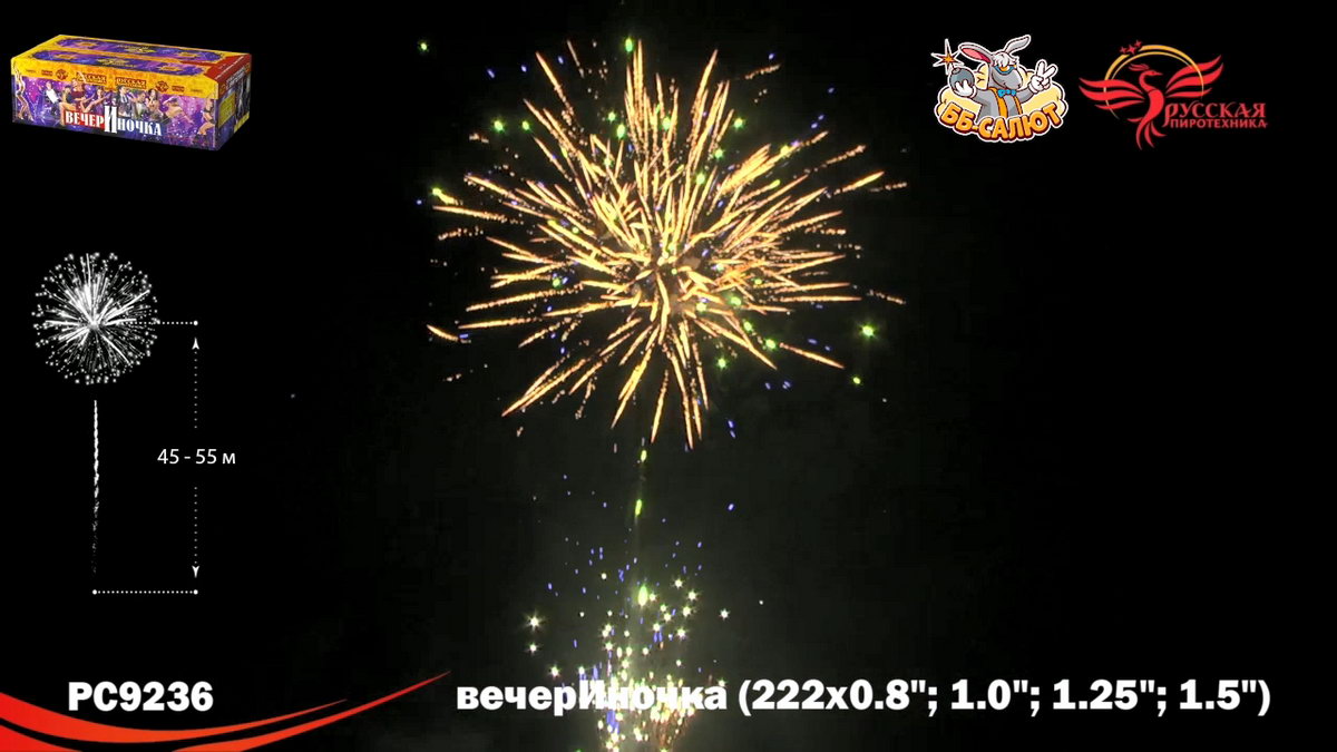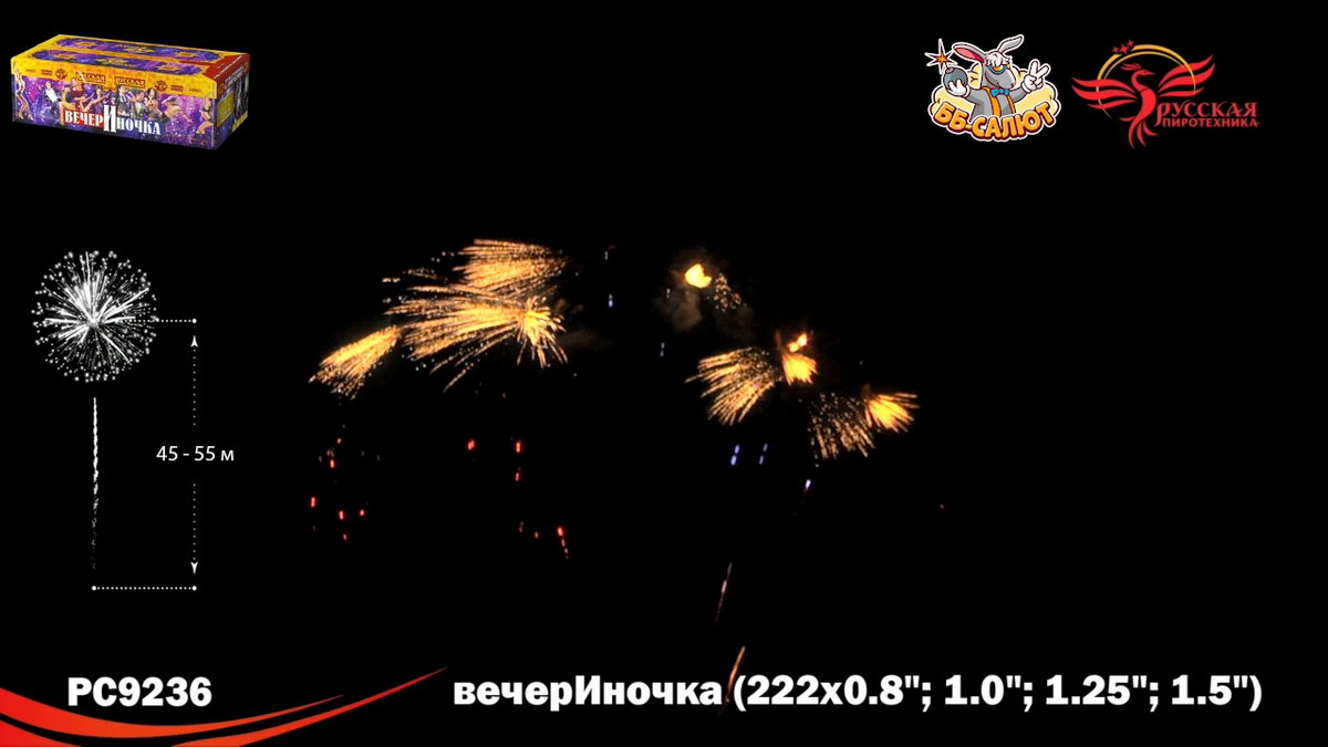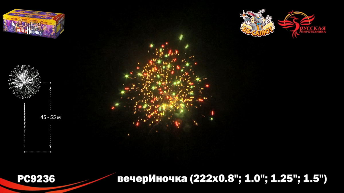 1. Букеты из серебряных мерцающих, синих огней. 2. Разноцветные кометы, свистящие элементы, золотые с мерцающими красными, зелёными, золотыми, серебряными искрами, с серебряными трещащими мерцающими искрами. 3. Зигзагообразные искристые трассы разрываются сферами из: Синих и красных огней с переходом в красные огни. 4. Крупных красных и зелёных, золотых мерцающих огней, множеством золотых трещащих сфер. 5. Коротких золотых форсов, синих и бирюзовых огней. 6. Серебряных форсов с красными огнями на концах, зелёных и белых мерцающих огней. 7. Золотых форсов с серебряными искрами, зелёных, синих, красных и трещащих огней. 8. Золотых искристых форсов и синих огней. 9. Серебряных форсов с фиолетовыми и зелёными огнями на концах, синих и белых мерцающих огней. 10. Серебряных форсов, красных и зелёных мерцающих огней. 11. Красных, зелёных и синих огней, множества трещащих разлетающихся золотых искр, трещащих сфер. 12. Золотых с красными мерцающими, зелёными, золотыми мерцающими искрами форсов и зелёных, красных, синих огней. 13. Золотых с серебряными мерцающими, трещащими искрами форсов, красных, зелёных и мерцающих красных, белых, золотых огней. 14. Золотых форсов и серебряных мерцающих огней. 15. Золотые с серебряными трещащими мерцающими искрами трассы, сферы из золотых форсов и золотых мерцающих огней (веер). 16. Букетики из красных огоньков; золотых форсов (веер). 17. Сферы из серебряных форсов и красных, зелёных огней (веер).
