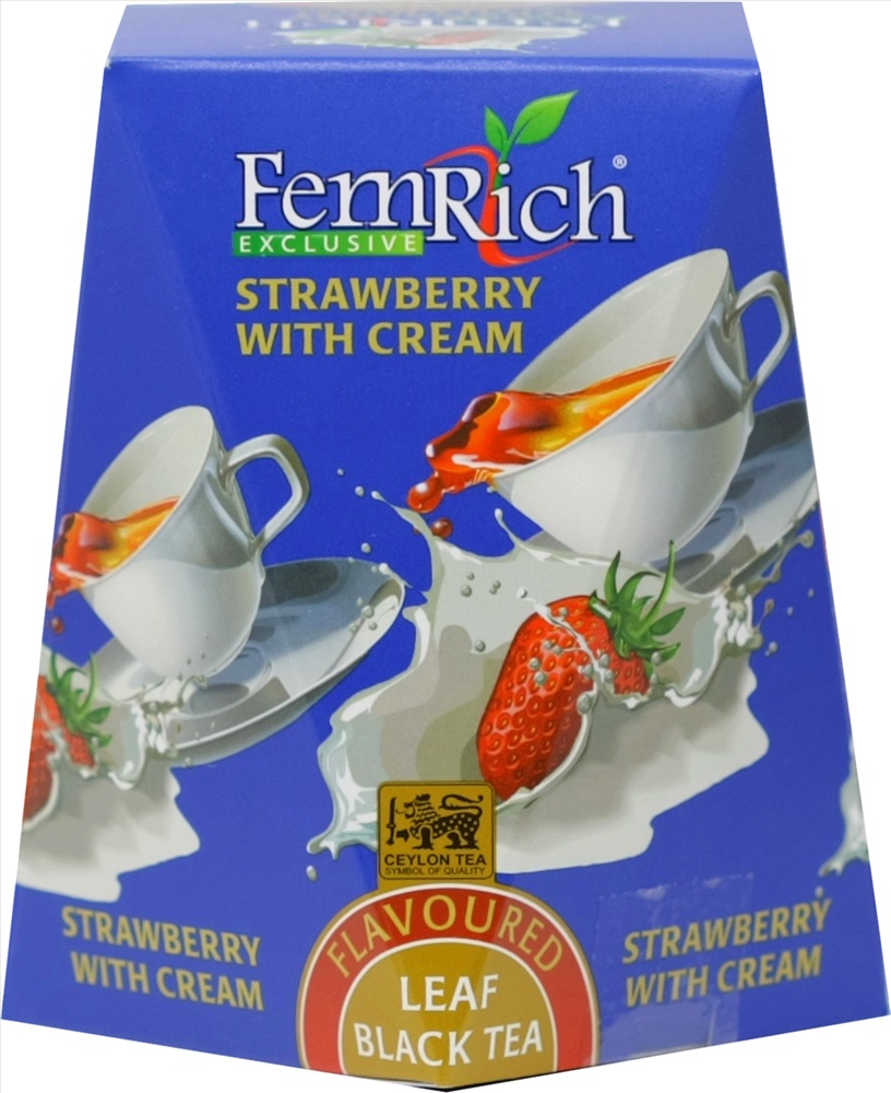 Чай черный цейлонский байховый крупнолистовой с натуральными растительными добавками.В процессе изготовления чай проходит мягкую ароматизацию, приобретая насыщенный тонкий вкус сливок, что делает его вкус более нежным и сладким. В этом купаже великолепно сочетаются терпкость чёрного чая, сладость клубничного десерта и изысканность молочно-сливочного вкуса. Цвет напитка янтарный, с приятным, устойчивым вкусом и нежным бархатистым ароматом.