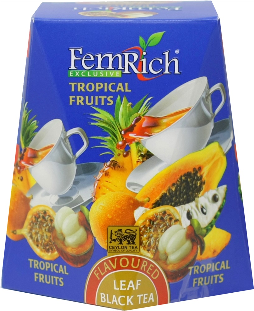 Чай черный цейлонский байховый крупнолистовой с натуральными растительными добавками.В составе высокогорный черный чай высшего сорта, кусочки ананаса, маракуйи, папайи, натуральный ароматизатор.Тропические купажи из самого сердца чайной индустрии — Шри-Ланки — вобрали в себя частички жаркого солнца и свежего дождя тропиков, чтобы дать вам полностью погрузится в атмосферу райского наслаждения!