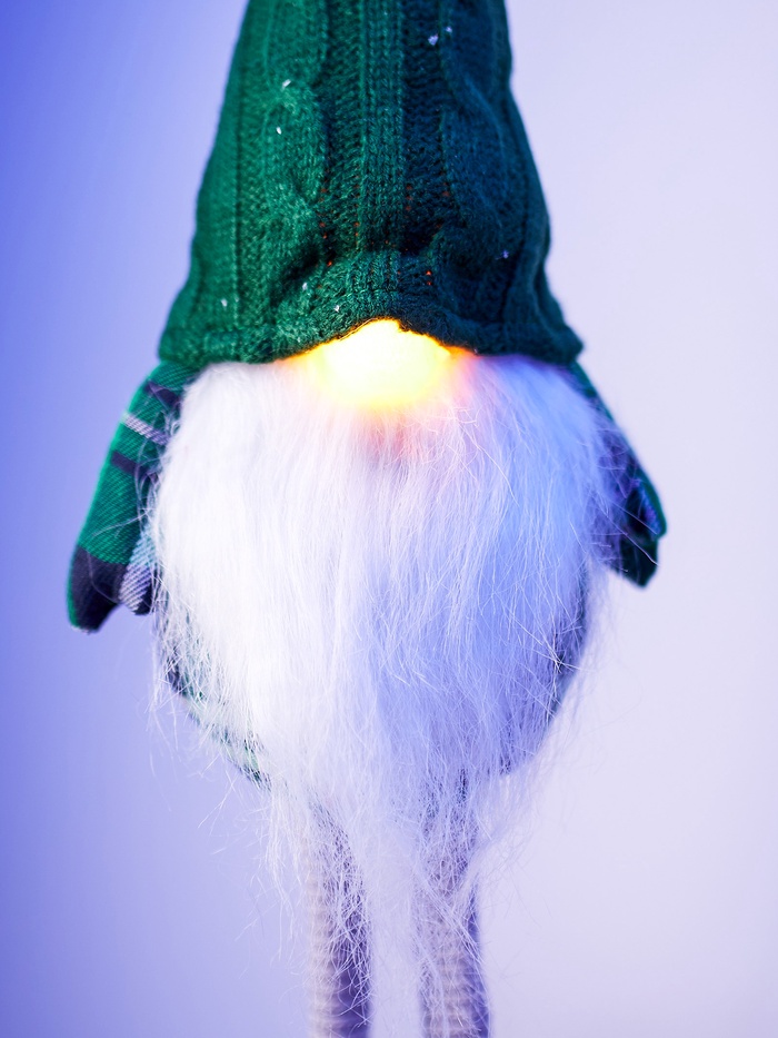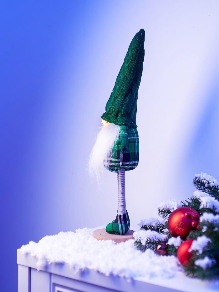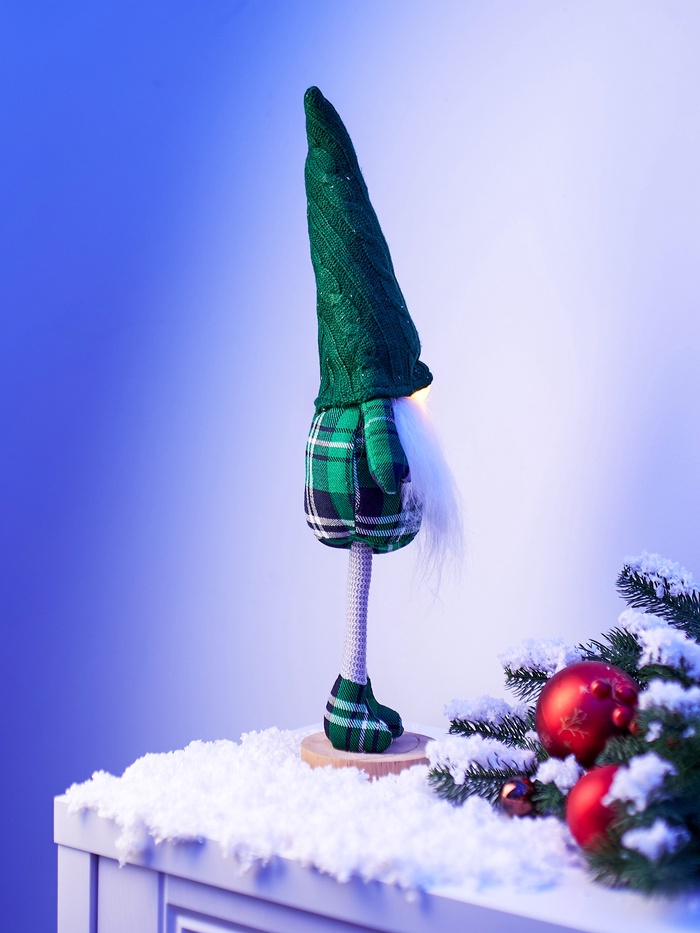 Габариты: 50 x 14 x 10,5 Страна: Китай В боксе: 24 шт В наборе: 1 шт Состав: Металл, от батареек (входят в комплект), пластик, текстиль Материалы: металл, от батареек (входят в комплект), пластик, текстиль Фасовка: по 6 шт Индивидуальная упаковка: Пакет Габариты товара: 10 см × 10 см × 54 см Сертификат: Не подлежит сертификации Цвет свечения: Тёплый белый Режим работы: Постоянное свечение Количество светодиодов: 1 Гарантийный срок, мес.: 6 Материал: Текстиль Тип питания: От батареек Эффект снежного вихря: Нет Очаровательный гном в зеленой одежде и с подсветкой — интерьерный акцент, который добавит сказочного настроения и уюта в ваш дом. Изготовленный из текстиля и оснащённый светодиодом, он светится мягким тёплым белым светом, создавая атмосферу комфорта и тепла. Компактная высота и автономное питание позволяют разместить фигуру на комоде, полке или подоконнике, не заботясь о проводах. КомплектацияДополнительноКомментарии к товару