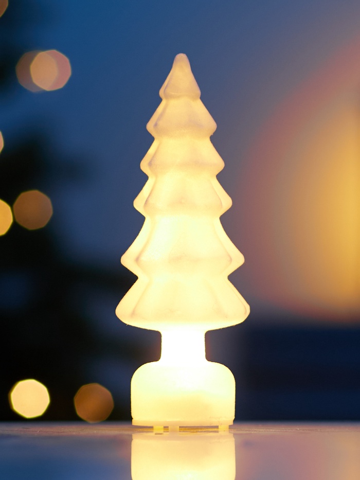 Светодиод с тёплым белым свечением обеспечивает постоянный мягкий свет, который не раздражает глаза и подчёркивает изящность формы. Питание от трёх батареек AG13 делает использование максимально удобным и мобильным — без ограничений по месту расположения и необходимости подключения к электросети.