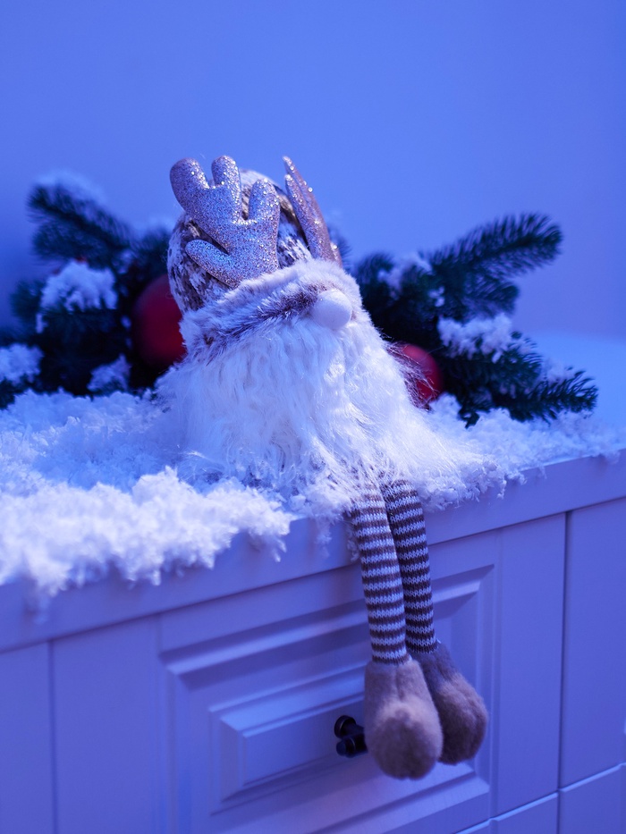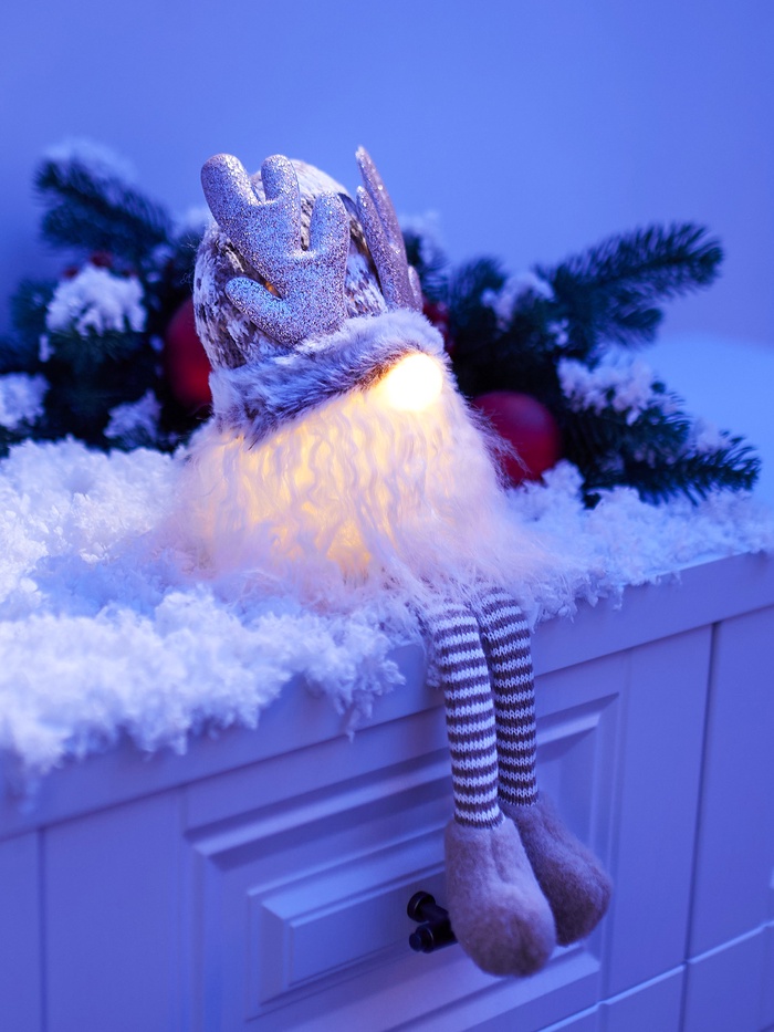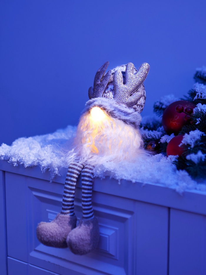 Материалы, такие как текстиль и пластик, делают гнома лёгким, но при этом устойчивым. Он станет отличным украшением для новогодней композиции, праздничного декора или просто добавит мягкого света и юмора в интерьер.