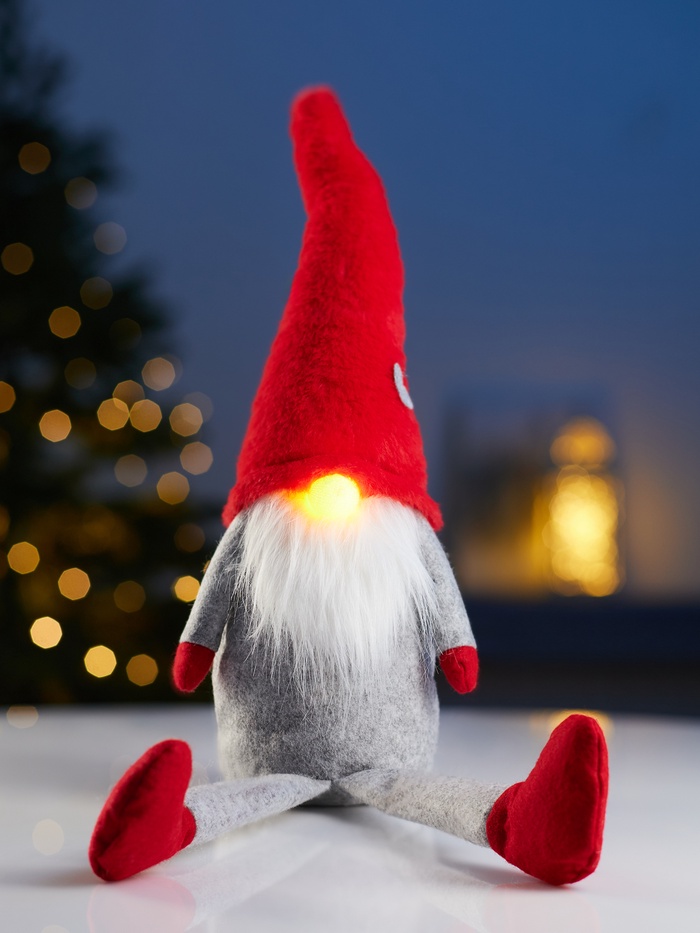 Питание от трёх батареек LR1130 обеспечивает автономную работу без лишних проводов и ограничений по размещению. Лёгкий и приятный на ощупь материал гарантирует безопасность и долговечность, а форма гномика прекрасно впишется в любой стиль новогоднего декора.