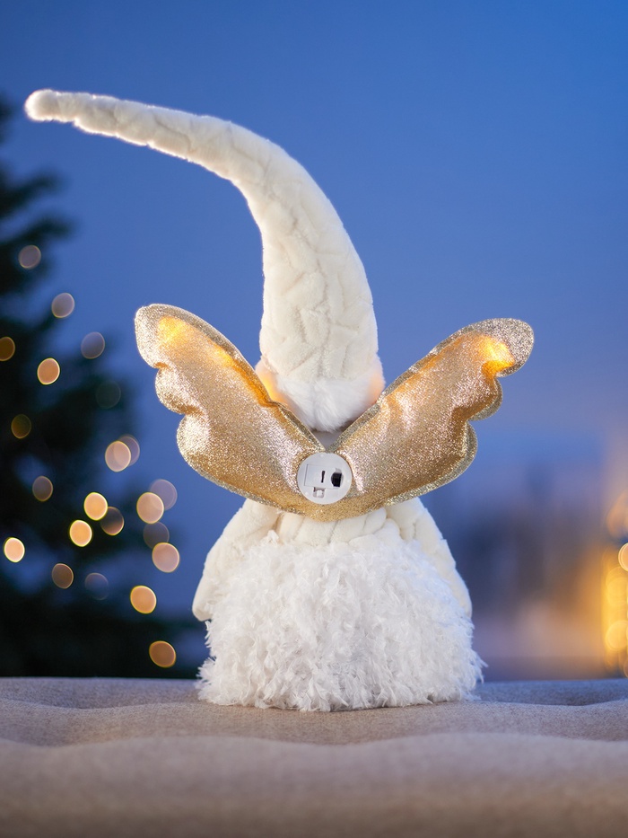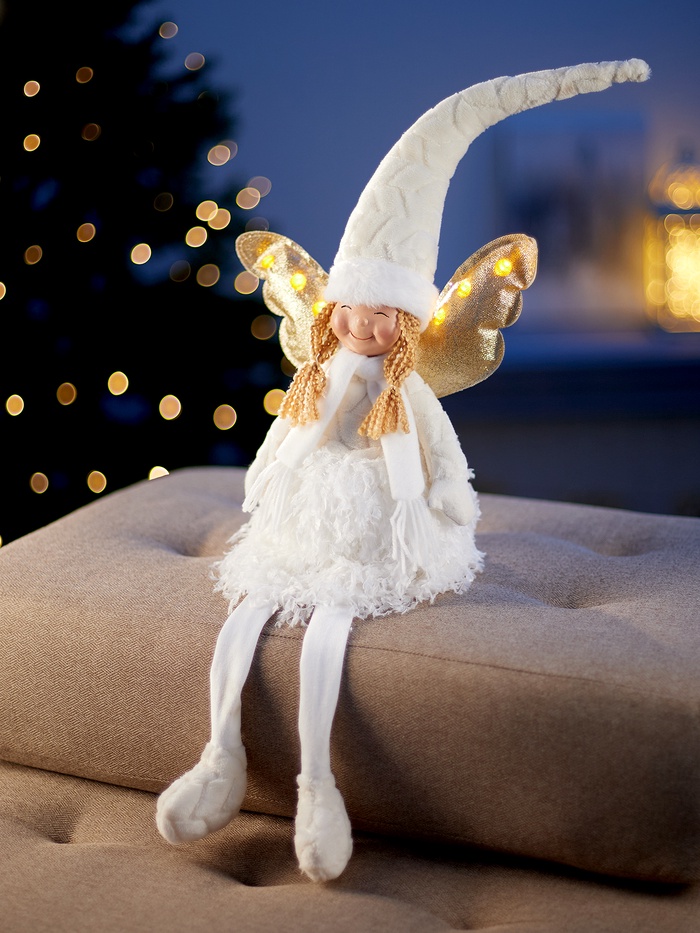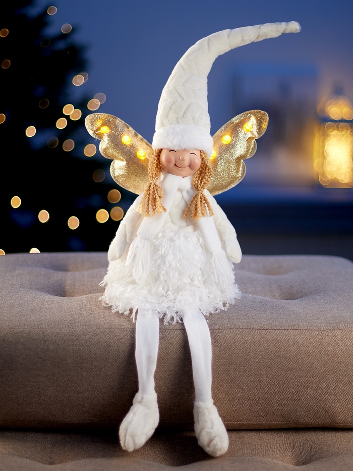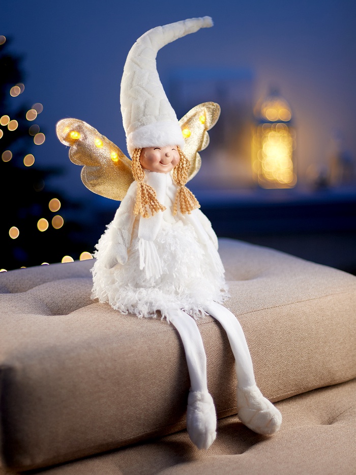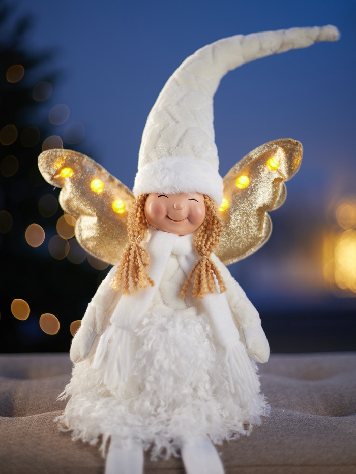 Текстильная кукла высотой 70 см в нежном белом исполнении объединяет в себе изысканность и функциональность. Шесть светодиодов с тёплым белым свечением создают мягкий и уютный свет, который равномерно освещает фигуру, придавая ей живость и особое очарование. Постоянный режим работы обеспечивает стабильное освещение без мерцаний, способствуя расслаблению и комфортной атмосфере в помещении.
