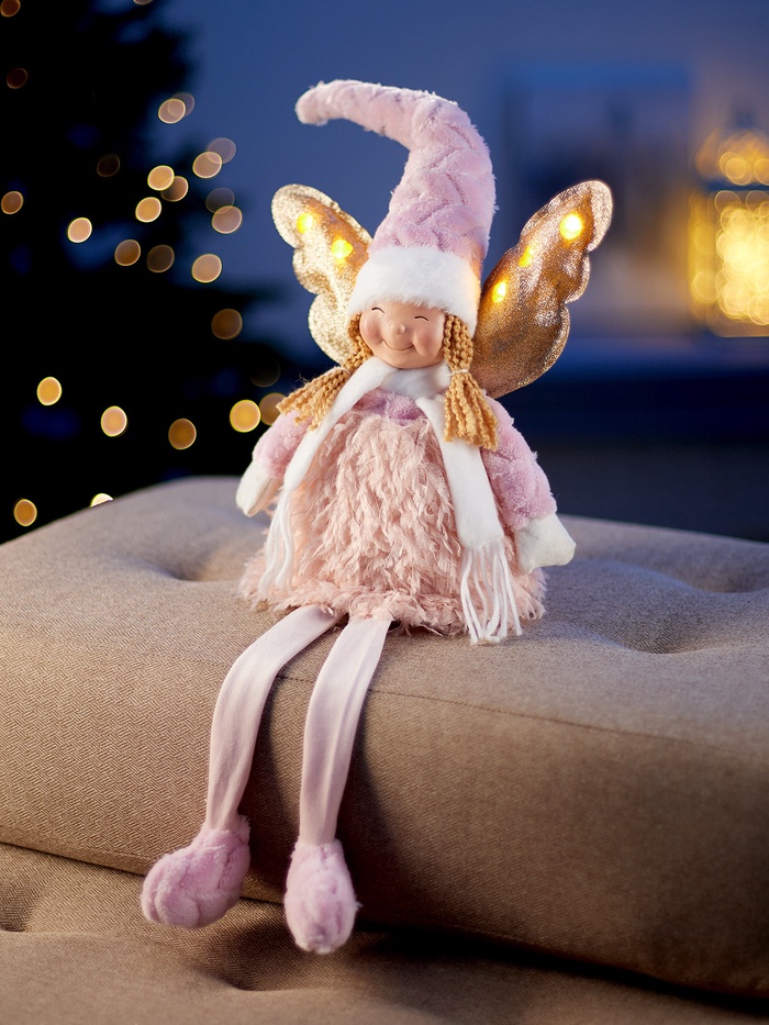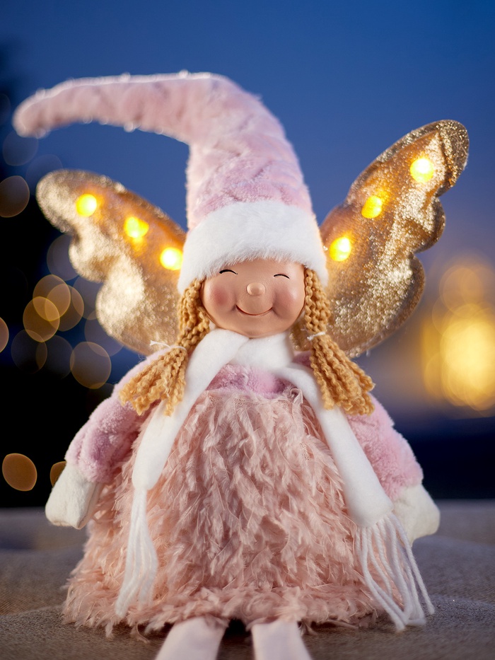 Габариты: 12 x 25 x 47 Страна: Китай В боксе: 24 шт В наборе: 1 шт Состав: Батарейка, металл, пластик, текстиль Материалы: батарейка, металл, пластик, текстиль Фасовка: по 1 шт Индивидуальная упаковка: Пакет Габариты товара: 16 см × 16 см × 70 см Сертификат: Не подлежит сертификации Цвет свечения: Тёплый белый Режим работы: Постоянное свечение Цвет: Розовый Высота, см: 70 Гарантийный срок, мес.: 6 Количество светодиодов: 6 Тематика праздника: Новый год Материал: Текстиль Материал: Текстиль Тип питания: От батареек Текстильная кукла высотой 70 см в нежном розовом исполнении не просто украшение — это источник мягкого, тёплого света, который создаёт атмосферу уюта и спокойствия в любом помещении. Шесть светодиодов обеспечивают равномерное и постоянное свечение, подчеркивая изящные детали и текстуру ткани, что придаёт фигуре живой и привлекательный вид. Питание от трёх батареек AG10 гарантирует автономность и удобство размещения без ограничений, связанных с проводами. Этот декоративный элемент легко впишется в интерьер детской комнаты, гостиной или спальни, становясь акцентом праздничного или повседневного декора.
