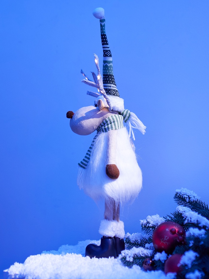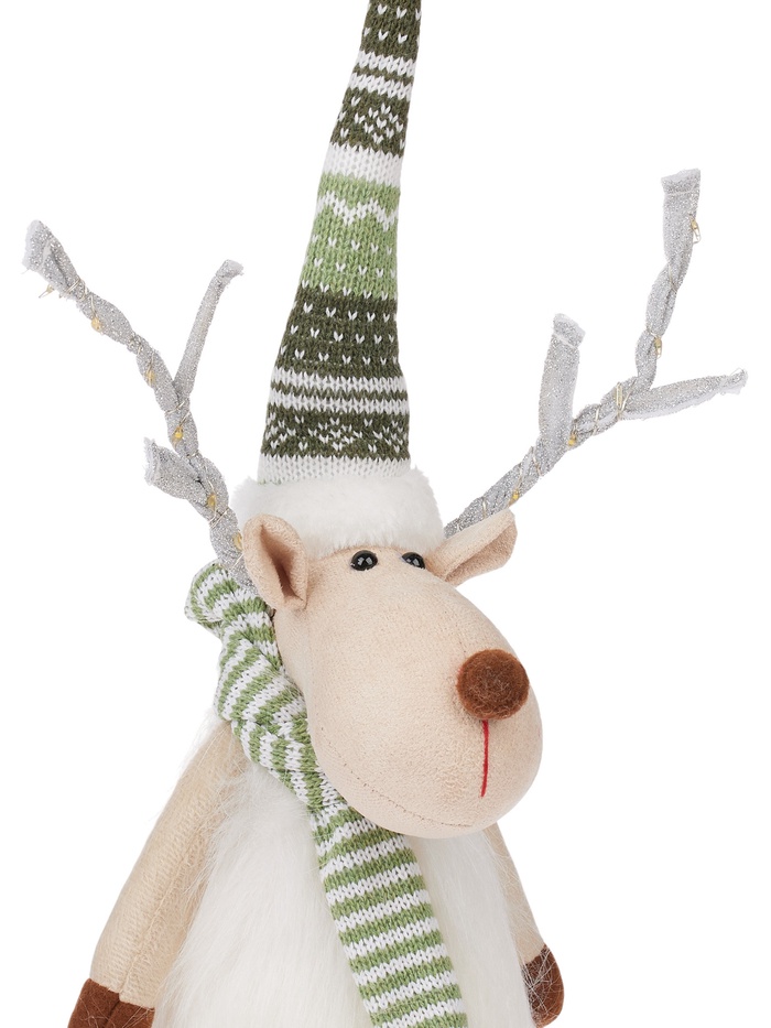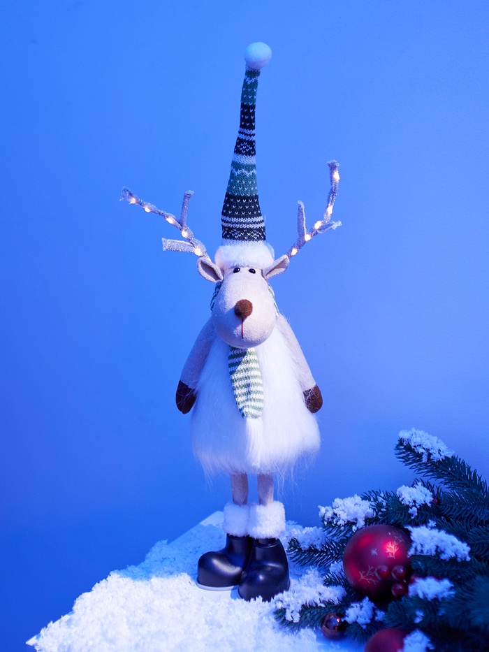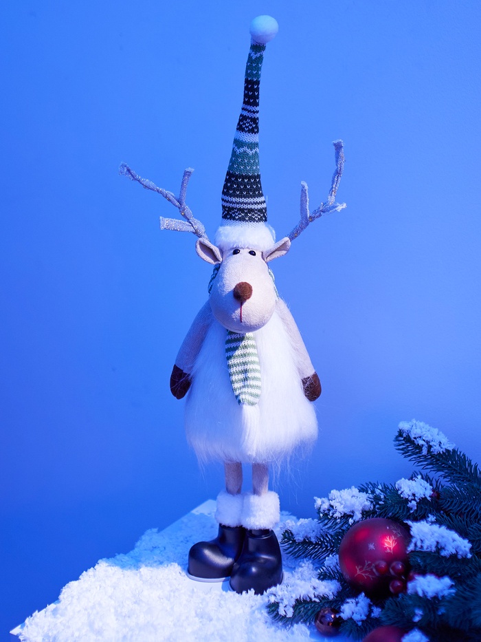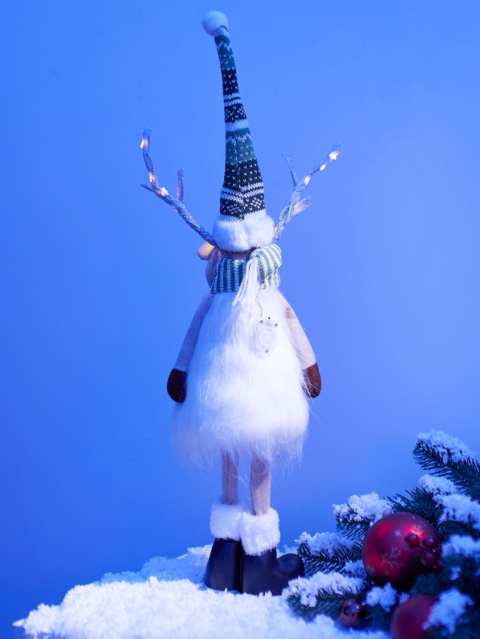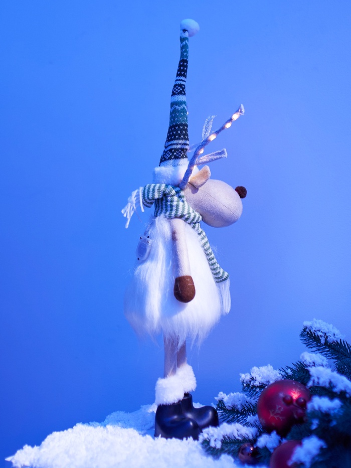 Габариты: 42 x 18 x 16 Страна: Китай В боксе: 12 шт В наборе: 1 шт Состав: Металл, от батареек (входят в комплект), пластик, текстиль Материалы: металл, от батареек (входят в комплект), пластик, текстиль Фасовка: по 1 шт Индивидуальная упаковка: Пакет Габариты товара: 20 см × 16 см × 58 см Сертификат: Не подлежит сертификации Цвет свечения: Тёплый белый Режим работы: Постоянное свечение Высота, см: 58 Гарантийный срок, мес.: 6 Количество светодиодов: 10 Символ года: Нет Тематика праздника: Новый год Материал: Текстиль Материал: Текстиль Тип питания: От батареек Эффект снежного вихря: Нет Текстильная фигура «Новогодний лосик» высотой 58 см дарит очарование зимнего леса и уютное световое настроение. Оснащённая 10 светодиодами, она испускает тёплый белый свет, создавая мягкое, праздничное сияние без резкости. Благодаря питанию от батарейки CR2032, фигуру можно разместить практически везде — на полке, столе или среди рождественской композиции, без необходимости подключения к сети. Материалы — текстиль и пластик — делают её одновременно мягкой и стойкой. Фигура выглядит элегантно и празднично, добавляя волшебной атмосферы в интерьер. Применение