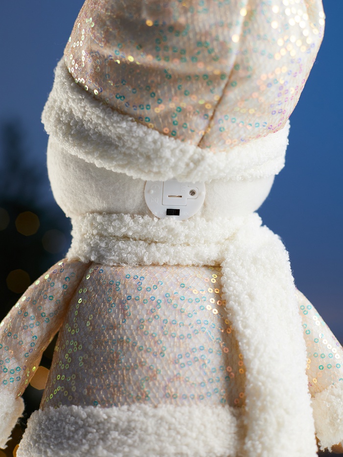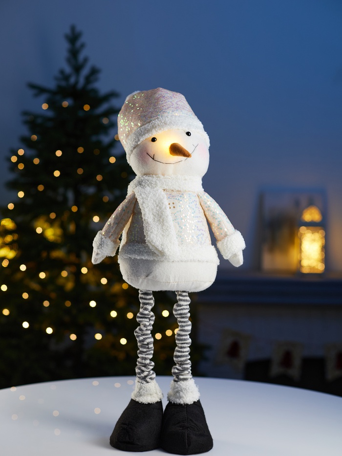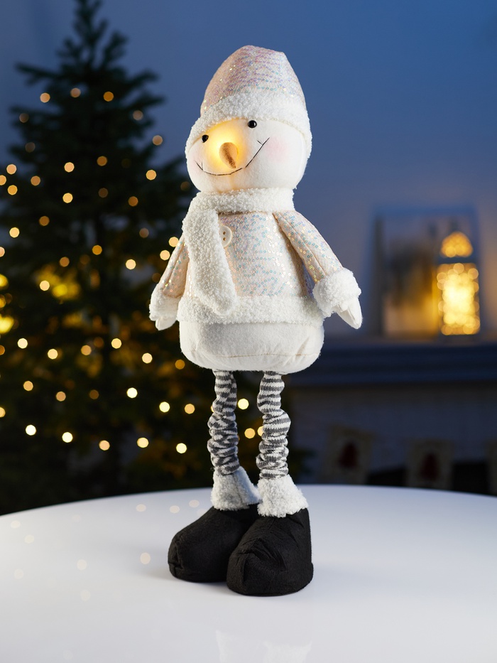Габариты: 55 x 24 x 12 Страна: Китай В боксе: 10 шт В наборе: 1 шт Состав: Батарейка, металл, пластик, текстиль Материалы: батарейка, металл, пластик, текстиль Фасовка: по 1 шт Индивидуальная упаковка: Пакет Габариты товара: 13 см × 24 см × 55 см Сертификат: Не подлежит сертификации Цвет свечения: Тёплый белый Режим работы: Постоянное свечение Цвет: Белый Высота, см: 55, 84 Количество светодиодов: 1 Гарантийный срок, мес.: 6 Тематика праздника: Новый год Материал: Текстиль Материал: Текстиль Тип питания: От батареек Текстильная фигура в образе снеговика с телескопическими ножками высотой от 55 до 84 см — это гармоничное сочетание декоративности и функциональности. Благодаря регулируемой высоте изделие легко подстраивается под любые интерьерные решения, позволяя создать праздничное настроение и добавить в пространство теплоты и уюта. Светодиод с тёплым белым свечением обеспечивает мягкое и равномерное освещение, которое не только подчёркивает очарование фигуры, но и создаёт атмосферу комфорта в любой комнате. Постоянный режим работы гарантирует стабильное свечение без мерцания, а питание от трёх батареек LR1130 обеспечивает автономность и удобство размещения без необходимости подключения к электросети.