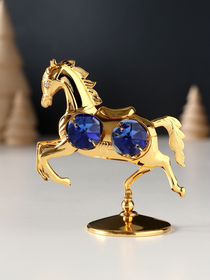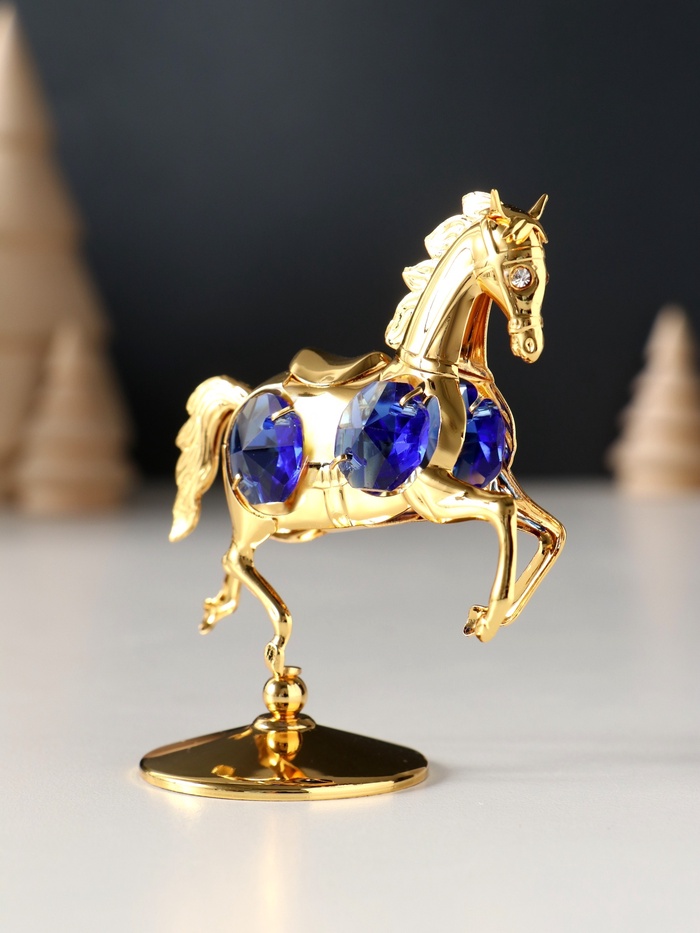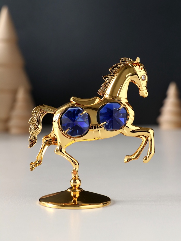 Эта изящная металлическая фигурка словно сошла со страниц сказки – золотистая лошадка с синими хрустальными вставками станет не просто украшением, а настоящим талисманом в вашем доме. Её динамичная поза и благородный блеск металла создают ощущение движения и жизни, будто вот-вот сорвётся вскачь.