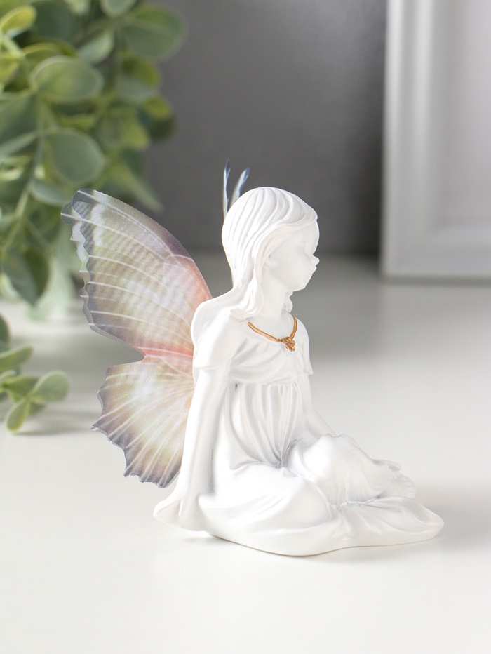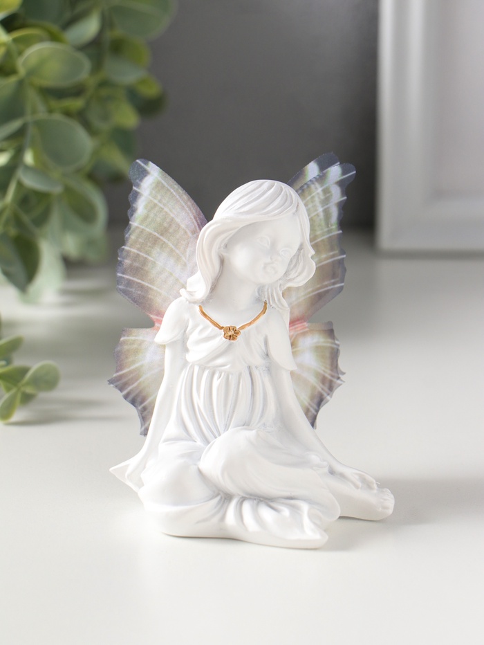 Эта белая фигурка из полистоуна — олицетворение нежности и нового начала. Изящная девочка-бабочка с золотым кулоном станет символичным подарком, передающим самые тёплые чувства. Её универсальная тематика делает скульптуру уместной в любом интерьере, добавляя пространству лёгкости и волшебства.