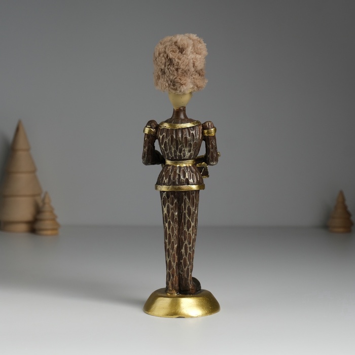 Тщательно проработанные детали костюма и атрибутов создают ощущение подлинности, будто перед вами миниатюрная копия настоящего военного музыканта прошлых веков. Коричневые оттенки придают фигурке особый шарм и универсальность.