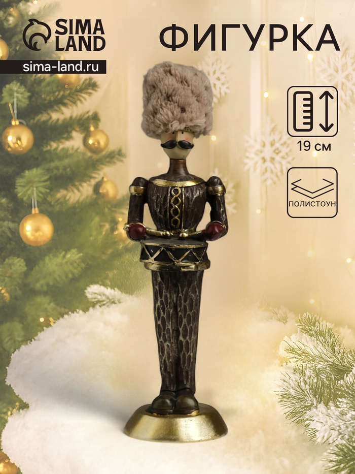 Эта изящная фигурка в классическом стиле привнесёт нотку благородства и воинской доблести в ваш интерьер. Солдатик с барабаном высотой 19 см, выполненный из качественного полистоуна, станет выразительным акцентом на книжной полке или рабочем столе.