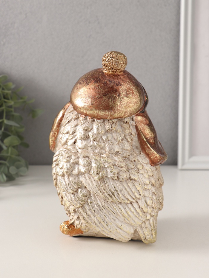 Страна: Китай В боксе: 8 шт Состав: Полистоун Материалы: полистоун Фасовка: по 1 шт Индивидуальная упаковка: Картонная коробка Сертификат: Не подлежит сертификации Набор: Нет Цвет: Золотистый Высота, см: 18 Тематика: Птицы Символ года: Нет Тематика праздника: Универсальная тематика, Новый год Материал: Полистоун Покрытие: Краска Одноцветный: Нет Эта фигурка совы в шапке-ушанке станет ярким акцентом в вашем интерьере или оригинальным подарком для близких. Изготовленная из прочного полистоуна, она сочетает в себе высокое качество и художественную выразительность. Золотистые оттенки добавляют композиции роскоши, а детализированная проработка фигуры подчеркивает мастерство исполнения. Особенности