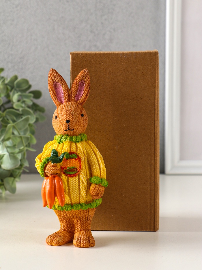 Страна: Китай В боксе: 144 шт Состав: Полистоун Материалы: полистоун Фасовка: по 1 шт Индивидуальная упаковка: Картонная коробка Габариты товара: 6,5 см × 6,5 см × 15,5 см Сертификат: Не подлежит сертификации Набор: Нет Цвет: Разноцветный Высота, см: 15,5 Тематика праздника: Пасха, Универсальная тематика Материал: Полистоун Одноцветный: Нет Эта фигурка зайца с морковью станет тёплым дополнением домашнего уюта. Она словно сошла со страниц доброй сказки, неся в себе очарование деревенского стиля. Фигурка создаёт особое настроение, напоминая о простых радостях и уютных зимних вечерах. Особенности