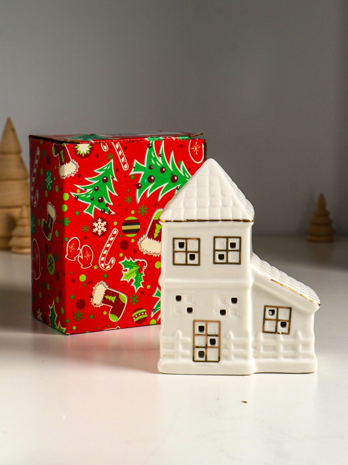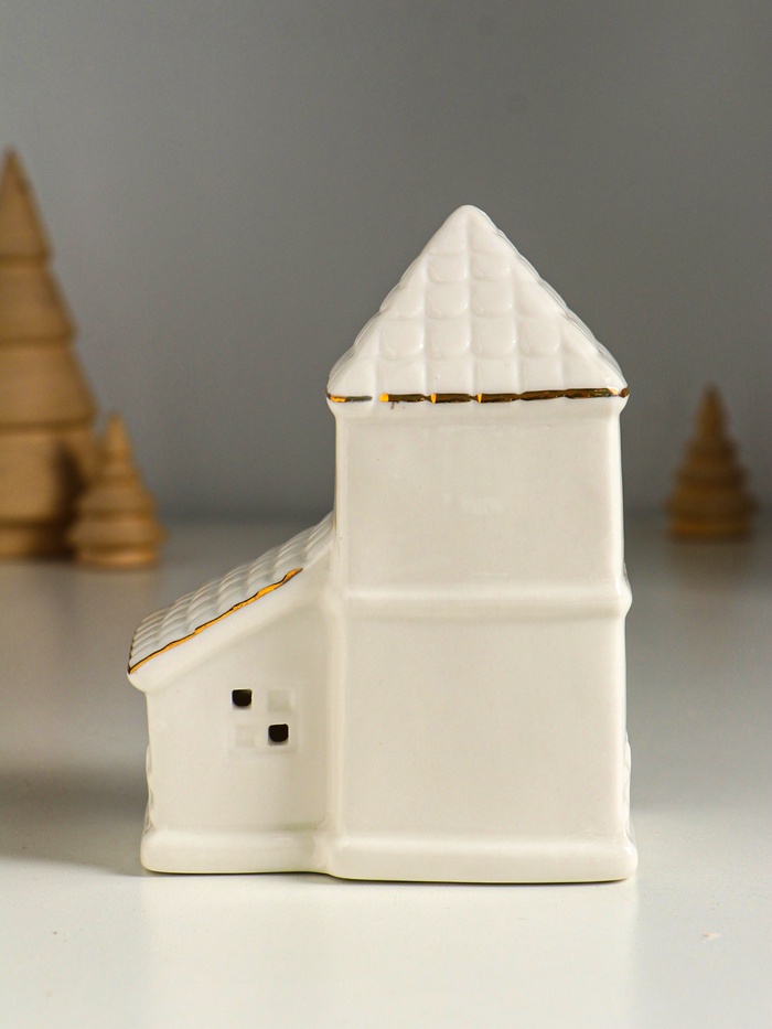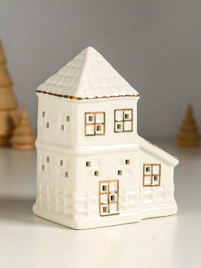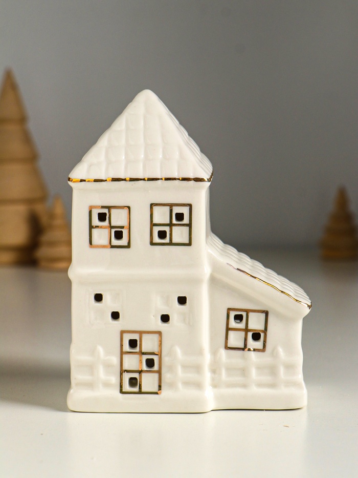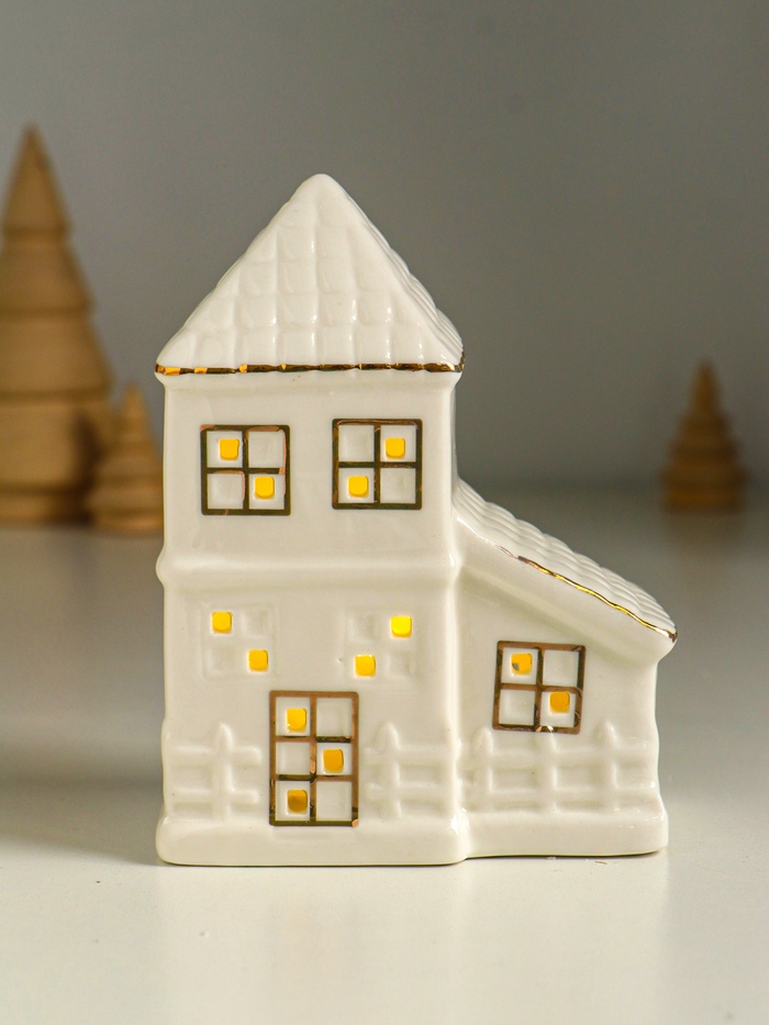 Страна: Китай В боксе: 72 шт Состав: Керамика Материалы: керамика Фасовка: по 1 шт Индивидуальная упаковка: Картонная коробка Габариты товара: 9,5 см × 6 см × 12,5 см Сертификат: Не подлежит сертификации Цвет свечения: Жёлтый Режим работы: Постоянное свечение Высота, см: 12,5 Символ года: Нет Тематика праздника: Рождество, Новый год Материал: Керамика Материал: Керамика Тип питания: От батареек Эффект снежного вихря: Нет Эта светящаяся керамическая фигурка создаёт в доме атмосферу уюта и праздника. Миниатюрный белый домик с золотым декором и тёплым жёлтым свечением станет сердцем новогоднего декора, наполняя комнату мягким, умиротворяющим светом, как живой огонёк в камине. Особенности