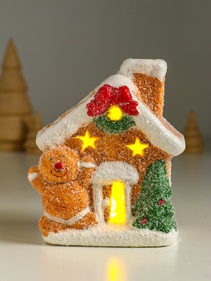 Эта светящаяся керамическая фигурка создаёт в доме атмосферу зимней сказки. Милый домик с Пряничкой станет сердцем вашего праздничного декора, наполняя пространство мягким золотистым светом.