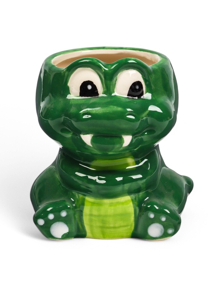 Керамическое кашпо «Крокодильчик Дино» 7×7×9 см — это фигурный контейнер для размещения небольших растений на столе. Дизайн в виде животного создает игривый акцент в интерьере.