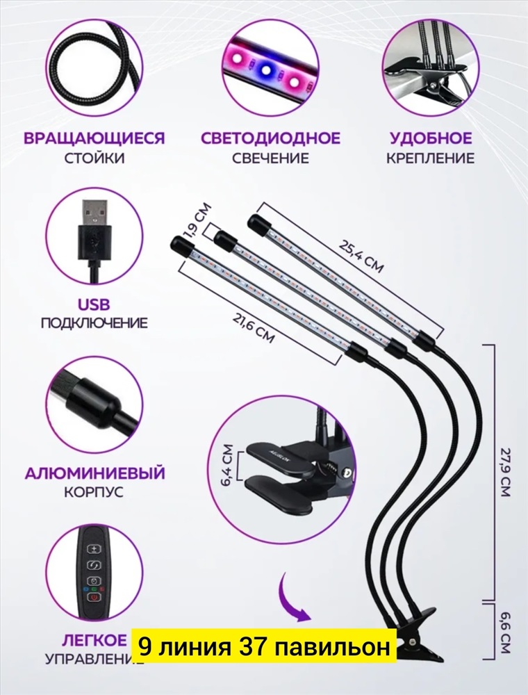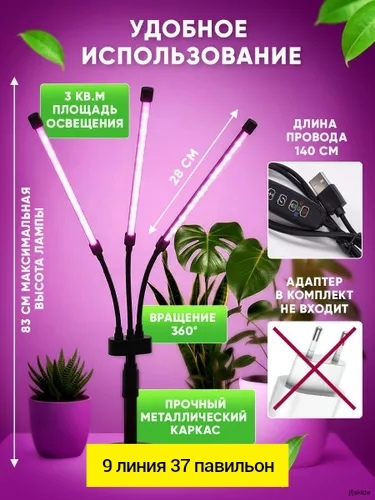 Фитолампа для растений 3 лампы