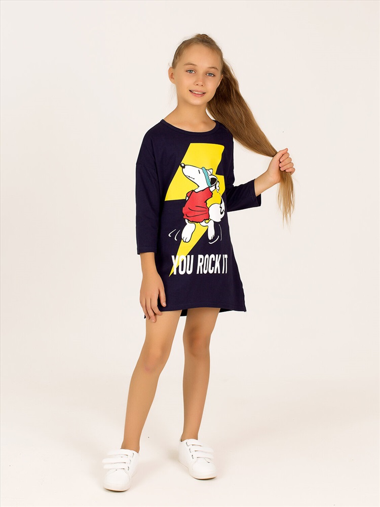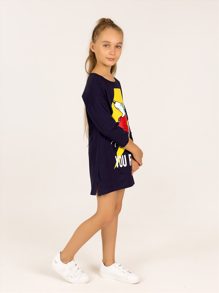 Невероятно удобная и практичная туника для девчки в стиле Оверсайз. В ней будет комфортно в любое время года. Наша туника для девочек выполнена из хлопкового кулирного полотна. Модель свободного кроя оверсайз с удобными рукавами 3/4. Горловина-лодочка обрабатывается под окантовку. Оригинальными элементами туники являются разрезы в боковых швах.