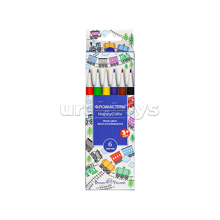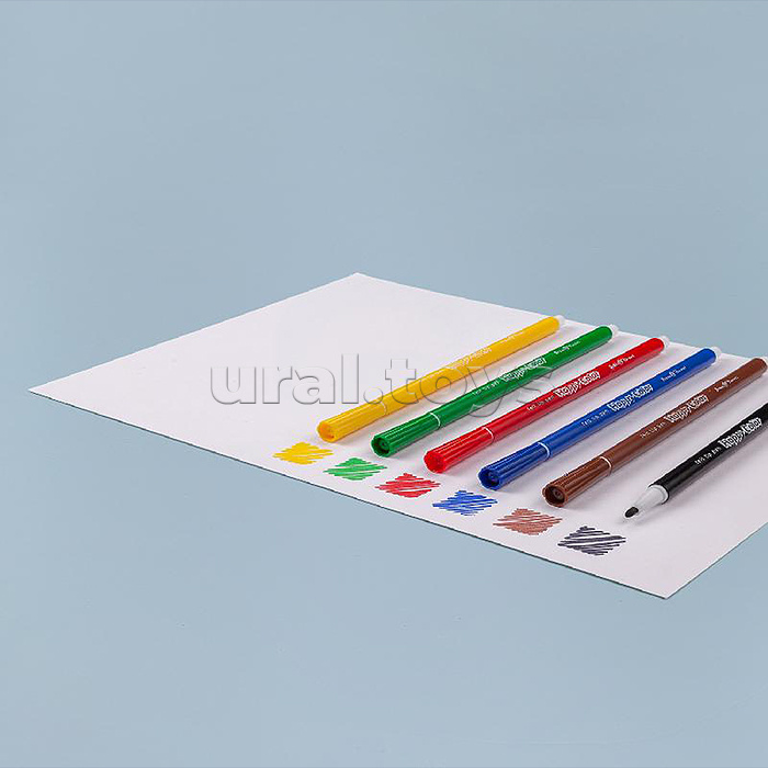 • В наборе: фломастеры цветные (6 цветов) - 6 шт. • Нетоксичные чернила на водной основе. • Цветной корпус из полипропилена. • Вентилируемый колпачок. • Яркие цвета. • Соответствует требованиям безопасности продукции. • Для детей от 3-х лет.