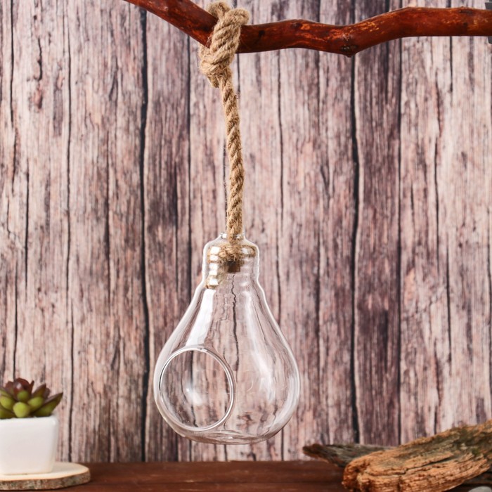 Страна: Китай В боксе: 60 шт Состав: Стекло, текстиль Материалы: стекло, текстиль Фасовка: по 1 шт Индивидуальная упаковка: Пенопласт Сертификат: Не подлежит сертификации Цвет: Прозрачный Высота, см: 13 Вид вазы: Настольная Материал: Стекло, Текстиль Откройте для себя уникальный элемент декора, который преобразит ваше пространство — стеклянный флорариум в форме лампы. Этот стильный аксессуар высотой 13 см и диаметром отверстия 5 см станет настоящей находкой для любителей растений и оригинального дизайна. Прозрачное стекло позволяет создать эффектные композиции, а текстильная веревка добавляет нотку уюта и тепла. Ключевые особенности