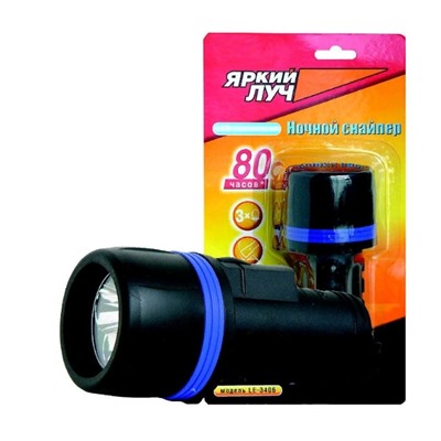 Фонарь ЯРКИЙ ЛУЧ LE-3406 Ночной снайпер 4AA резиновый, 3 светодиода, на 4хAA Комментарии к товару