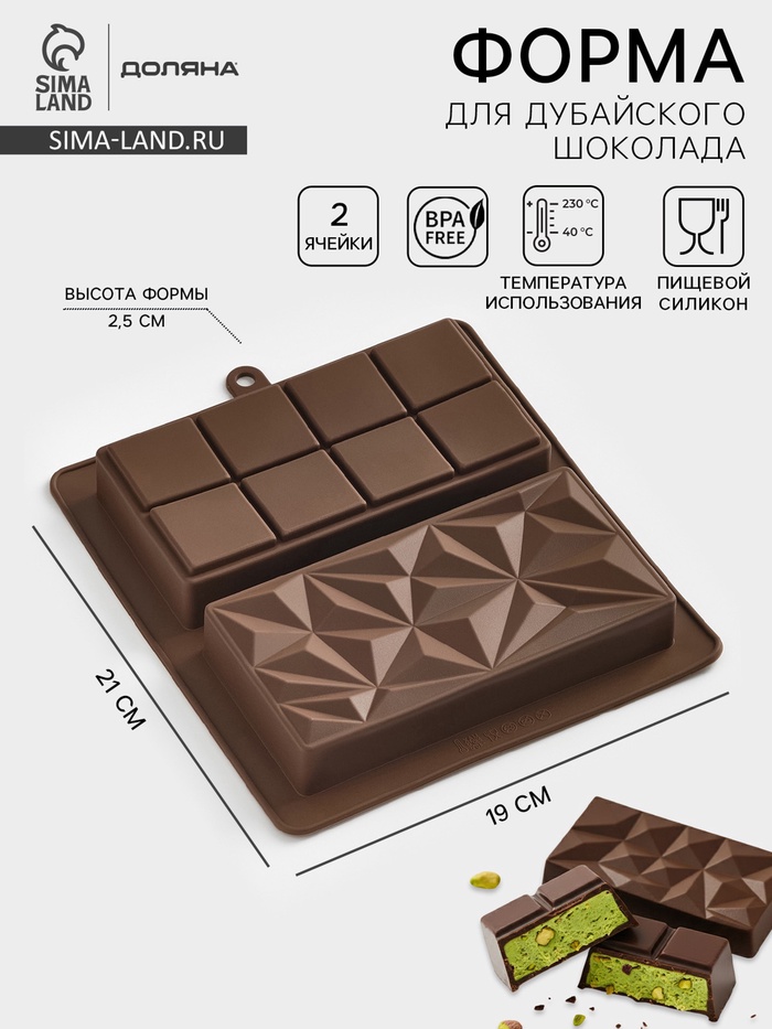 Габариты: 22,5 x 19 x 3 Страна: Китай В боксе: 240 шт Состав: Силикон Материалы: силикон Фасовка: по 1 шт Индивидуальная упаковка: Пакет Габариты товара: 21 см × 19 см × 2,5 см Сертификат: СТР Набор: Нет Цвет: Коричневый Количество ячеек: 2 Тематика праздника: Универсальная тематика Материал: Силикон Тематика: Геометрические фигуры Форма: Плитка Можно мыть в посудомоечной машине: Да Силиконовая форма для шоколада «Квадраты и пирамиды» — идеальный выбор для тех, кто ценит чёткие линии и геометрическую эстетику в домашней кондитерской. Две глубокие плитки — позволяют создавать десерты с выразительной формой и гладкой поверхностью, будь то классический тёмный шоколад, белый или с добавками. Благодаря эластичному силикону заготовки легко извлекаются без повреждений, а коричневый оттенок формы гармонично вписывается в любой кухонный интерьер. Особенности