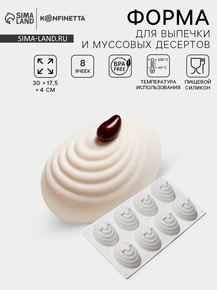 Готовьте в удовольствие с силиконовой формой «Джелли»! Большой выбор форм для муссовых десертов вы найдёте в специальном разделе. ДополнительноВ связи с особенностями складского хранения и условиями транспортировки, форма может иметь помятости. Это не является производственным браком и не считается дефектом. Такой товар возврату не подлежит. Для того, чтобы вернуть форме из силикона первоначальный вид и устранить вмятость, рекомендуем оставить форму в горячей воде на несколько минут, чтобы она расправилась, после чего можно приступать к её использованию. Комментарии к товару