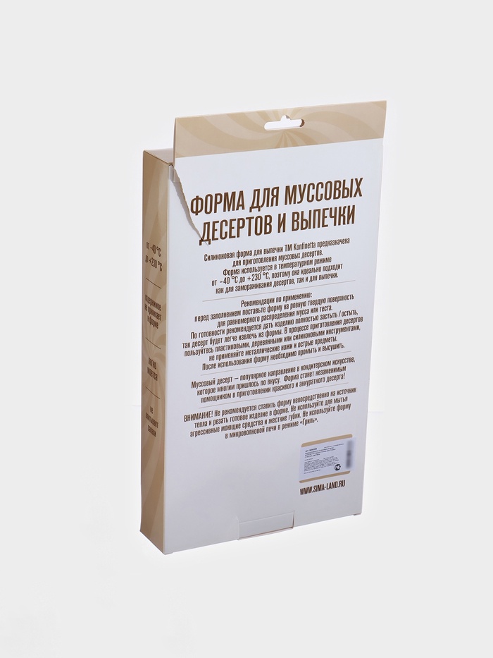 Габариты: 31,5 x 17,5 x 4,5 Страна: Китай В боксе: 29 шт Состав: Силикон Материалы: силикон Фасовка: по 1 шт Индивидуальная упаковка: Картонная коробка Габариты товара: 30 см × 17,5 см × 4 см Сертификат: РСТ Набор: Нет Цвет: Белый Фасовка, шт.: 1 Количество ячеек: 8 Рисунок: Нет Крышка: Нет Тематика праздника: Универсальная тематика Материал: Силикон Тип покрытия: Без покрытия Ячейки: Да Наличие палочек для форм: Нет Тип формы: Для муссовых десертов Разъёмная форма: Нет Можно мыть в посудомоечной машине: Нет Фиксированная цена: Да Муссовый десерт — новое направление в кондитерском искусстве, которое многим пришлось по вкусу. Для приготовления вам пригодится этот незаменимый помощник каждой хозяйки. Изделие очень прочное и гибкое — готовый десерт легко извлекается из формы. Он будет выглядеть красиво и аккуратно, не пригорит и не прилипнет к стенкам, лакомства выпекаются быстро и легко. Рекомендации к применению