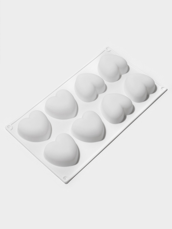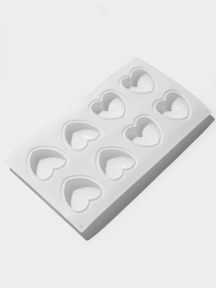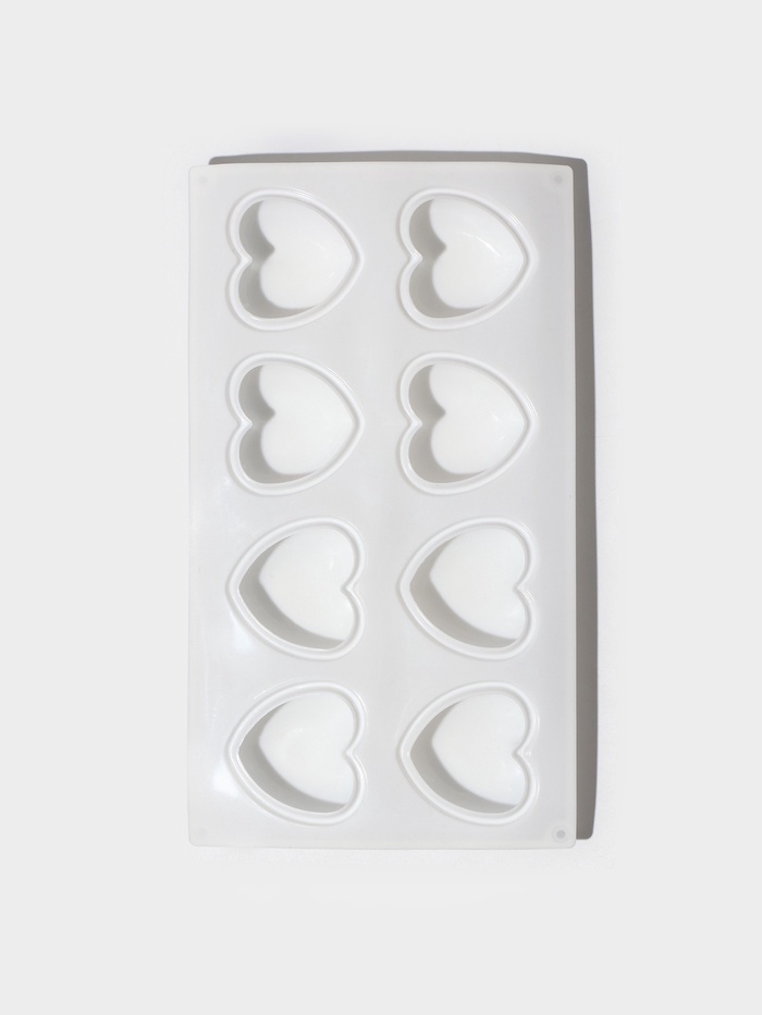 - 8 крупных ячеек в форме сердца — достаточно для сервировки гостей или тематического подарочного набора.