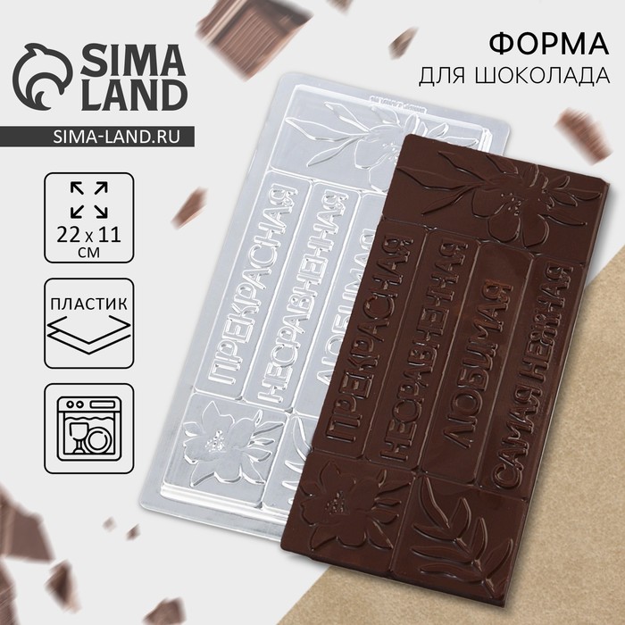 Габариты: 0,8 x 12,5 x 27 Страна: Китай В боксе: 1000 шт Состав: Пластик Материалы: пластик Фасовка: по 1 шт Индивидуальная упаковка: Блистер Габариты товара: 22 см × 11 см × 0,1 см Сертификат: РСТ Набор: Нет Цвет: Прозрачный Форма: Прямоугольная Тематика праздника: Универсальная тематика, 8 Марта Материал: Пластик Тип формы: Для шоколада Тематика: Цифры, буквы, Растения, цветы Форма: Плитка Фиксированная цена: Да Форма для шоколада «Самой милой», 22×11 см Форма для шоколада изготовлена из пластик. Формочка используется для приготовления шоколада, для декора тортов и десертов , медианты, а так же для творчества. При изготовлении содержимое не прилипает к стенкам формы, не впитывает запах. Если вы ставили форму в холодильник или морозилку, перед тем как доставать готовое изделие, ему необходимо дать постоять и согреться до комнатной температуры. Кондитерский инвентарь легко моется. Пластиковые формы просты в эксплуатации. Подойдут для начинающих кондитеров. Особенности: