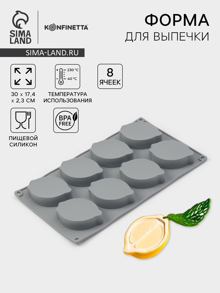 - Оригинальный дизайн: Восемь ячеек в форме лимонов придадут вашим десертам неповторимый вид и сочную свежесть. Идеально для создания тематических угощений.
