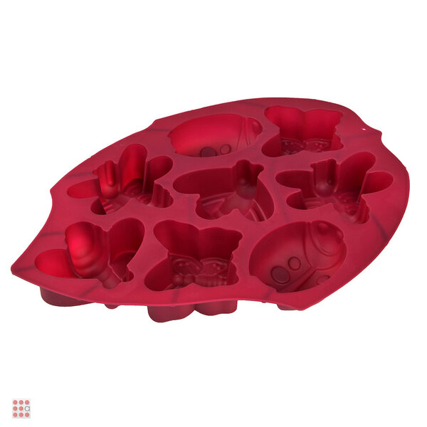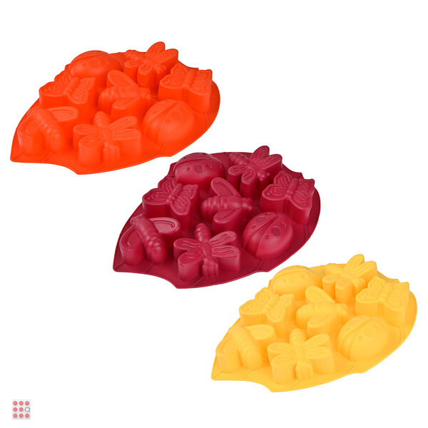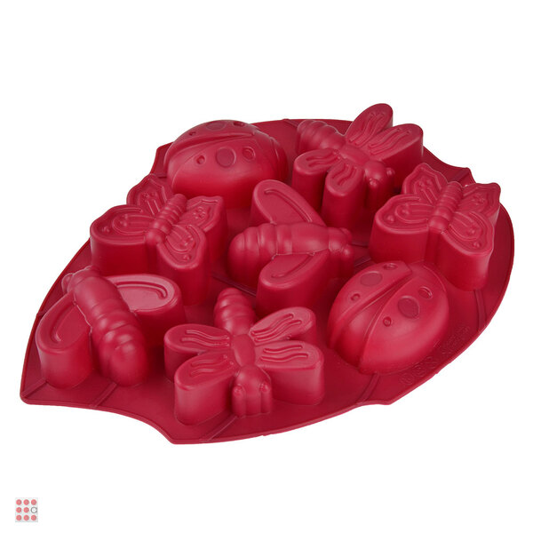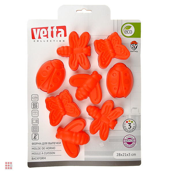 Форма для выпечки размером 28х21х3 см из силикона, разделенная на 8 ячеек в форме бабочек и стрекоз, предназначена для выпечки изделий из теста в духовых шкафах.