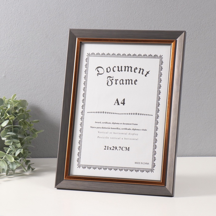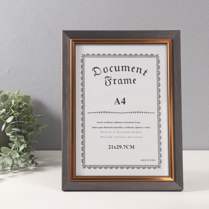 Фоторамка для фото А4 «Вайолетт», пластик, серая с золотой полосой, 1.5×25.4×34 см