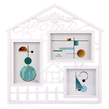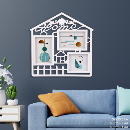 Фоторамка - коллаж на три фотографии, с размерами: 1 штука-10х15 см, 2 штуки-10х10 см. Фоторамка станет удачным подарком или украшением вашего интерьера.