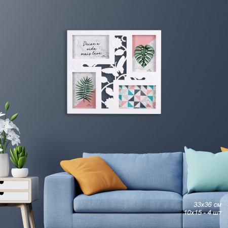 Фоторамка - коллаж на четыре фотографии с размерами : 2 штуки-10х15 и 2 штуки- 15х10. Фоторамка станет удачным подарком или украшением вашего интерьера.