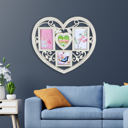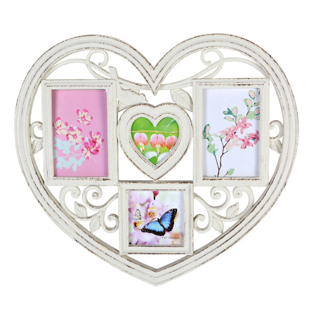 Фоторамка - коллаж на четыри фотографии разных форм, с размерами: 2 штуки-10х10 см, 2 штуки-10х15 см. Фоторамка станет удачным подарком или украшением вашего интерьера.