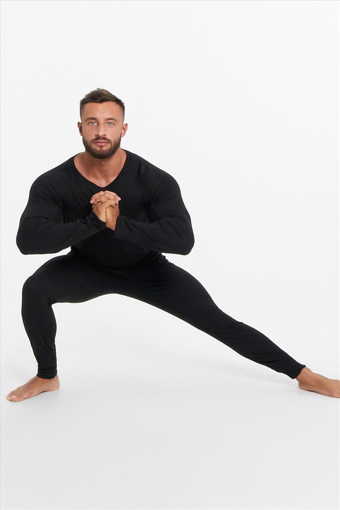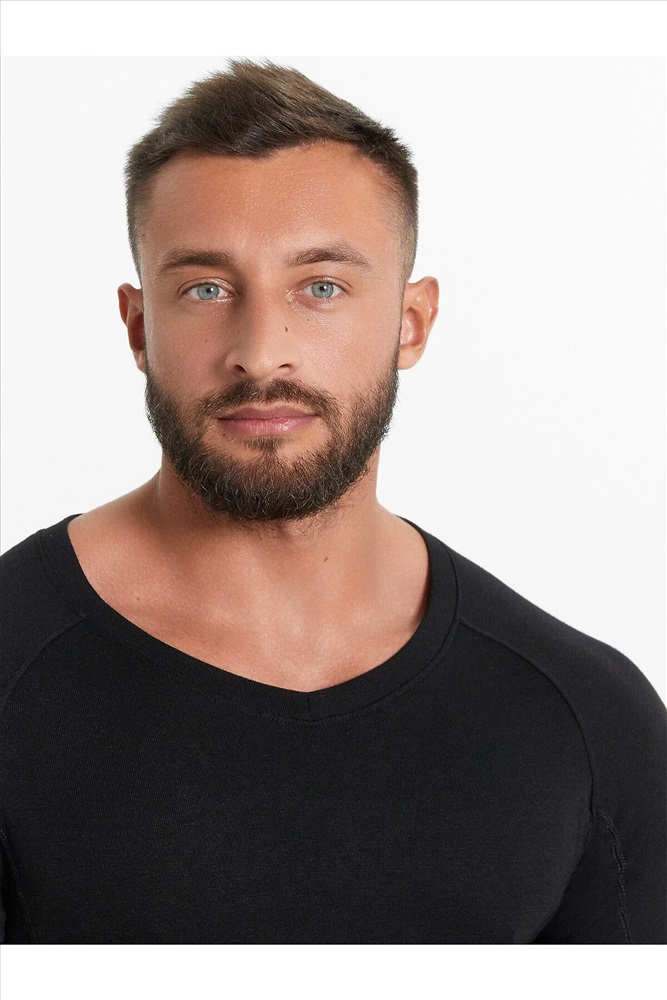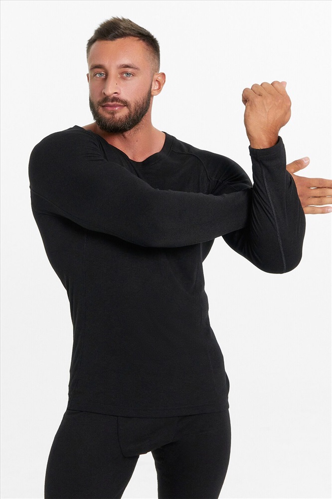 Комфортабельная мужская фуфайка из термо-материала с V-образным вырезом горловины и длинным рукавом. Незаменимая деталь гардероба для холодного времени года. "Умный" материал фактуры "термо" удерживает тепло и в то же время отводит избыточную влагу. Изделия из такой ткани могут использоваться ежедневно, для занятий спортом, охотой, рыбалкой и активного отдыха. Особый способ вязания полотна, предуcматривающий воздушные ячейки, соединяющие основу полотна с верхним слоем, придаёт изделиям особые гигиенические и термические свойства. Австрийская технология производства ткани позволяет выдерживать экстремальные температуры до -20 градусов Цельсия. Не мёрзните, не болейте и чувствуйте себя комфортно!